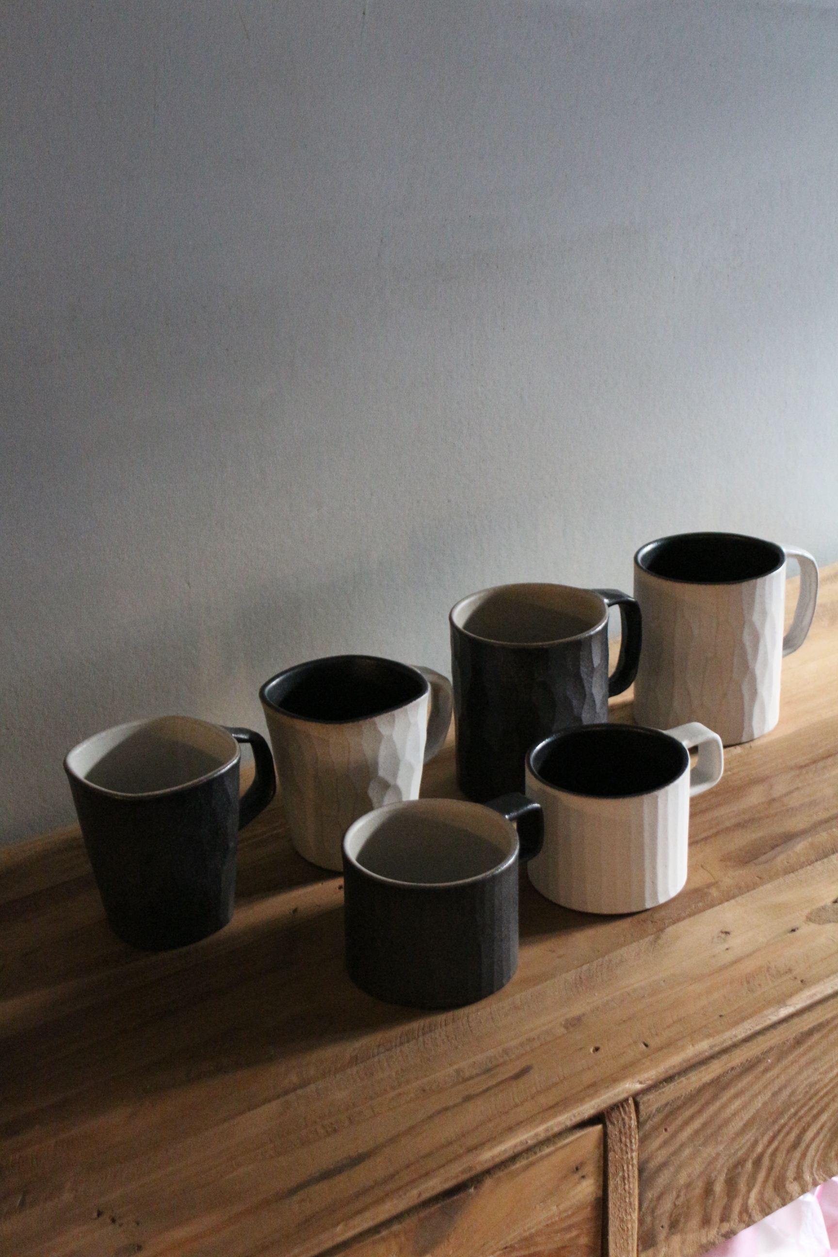 不同於過往陶土帶給人溫潤的印象,張立杰的作品有稜有角,每一道刻鑿所留下的線條,也蘊藏了當下創作的手感,讓每一只杯子保有各自的個性與姿態。