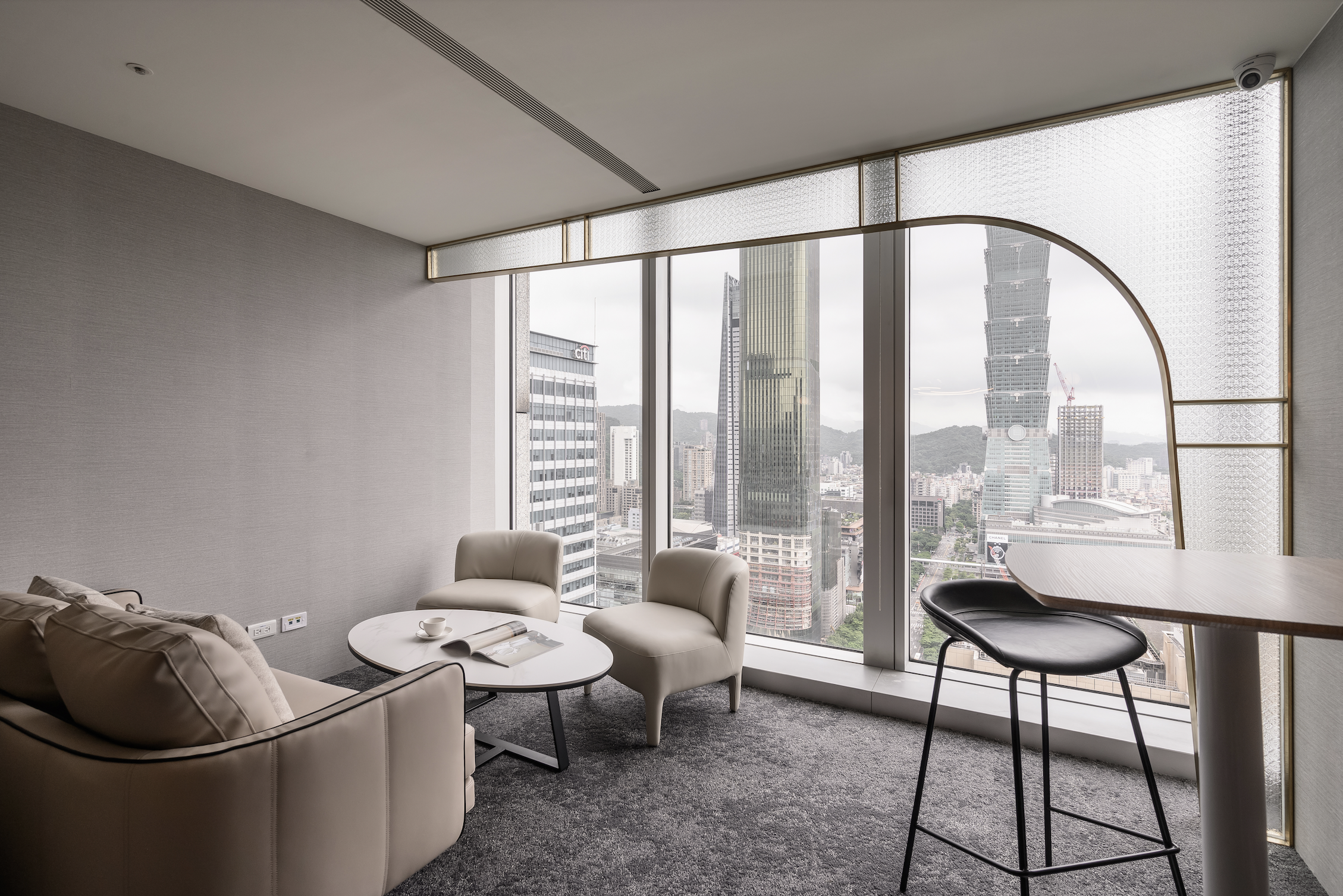 新落成的「松高旗艦館」以現代設計為主軸,結合一號作品「信義館」的典雅舒適與二號作品「松高館」的文藝精緻,並添加跳色元素注入活力。特別設置101觀景休憩區,讓客戶能悠然欣賞台北地標風采。