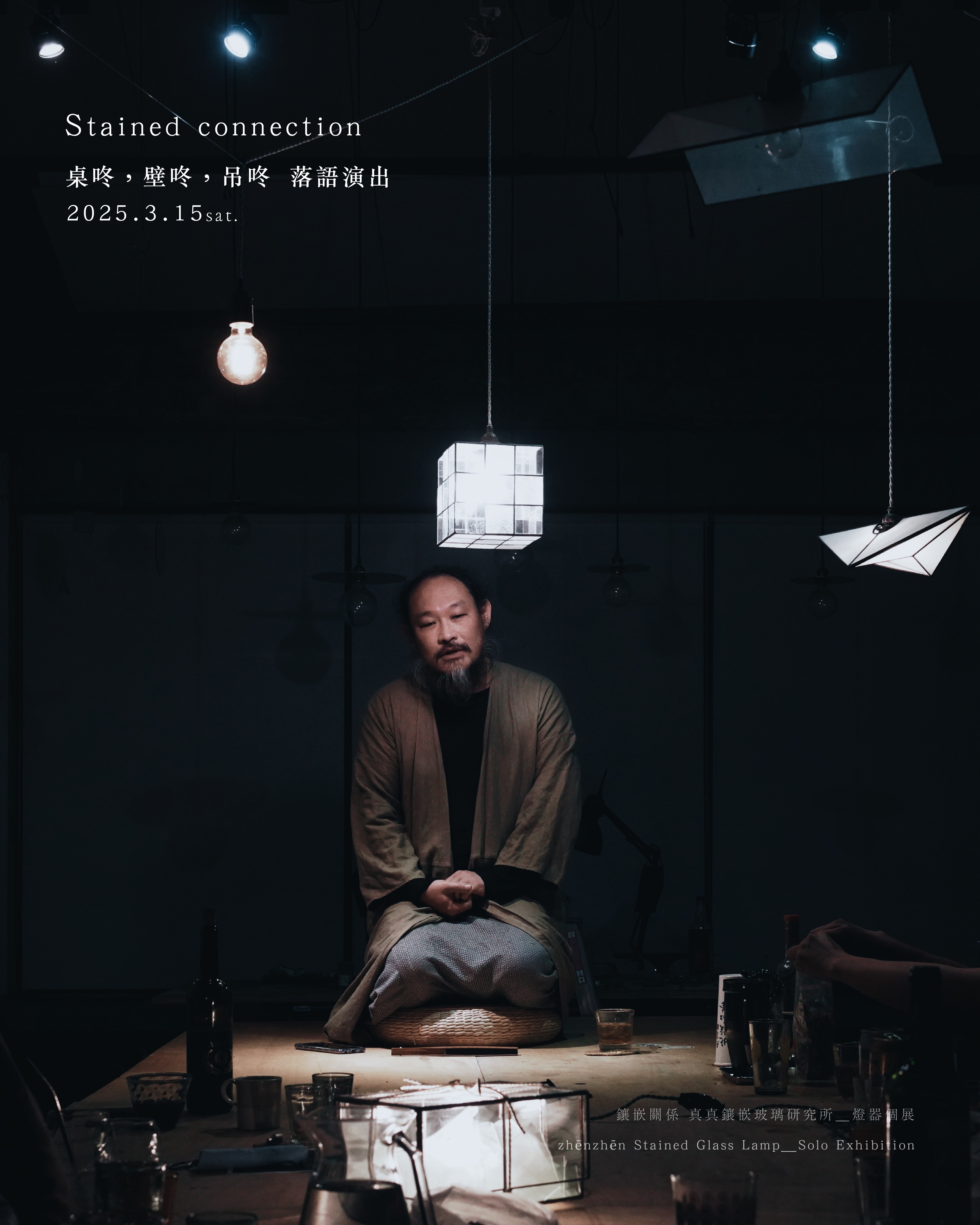 《鑲嵌關係 / Stained Connection》個展以燈器作品為媒介,回顧真真鑲嵌玻璃研究所自 2018 年創立以來,在七年時光中,逐步體悟「鑲嵌」所承載的深刻意義。本次展覽從台灣窗花玻璃到早期歐美進口的手工玻璃,還特別呈現來自日本愛媛縣大洲城下町的昭和時期古窗花玻璃,並發表全新燈器作品「L013」,這些素材豐富了「Relight+」的核心理念與歷史脈絡。同時,展覽將舉辦「愛媛大洲城下町分享會」和「桌咚,壁咚,吊咚 / 落語演出」等特別活動,藉由過去與現代的交織,探索每一片玻璃所承載的故事與情感。