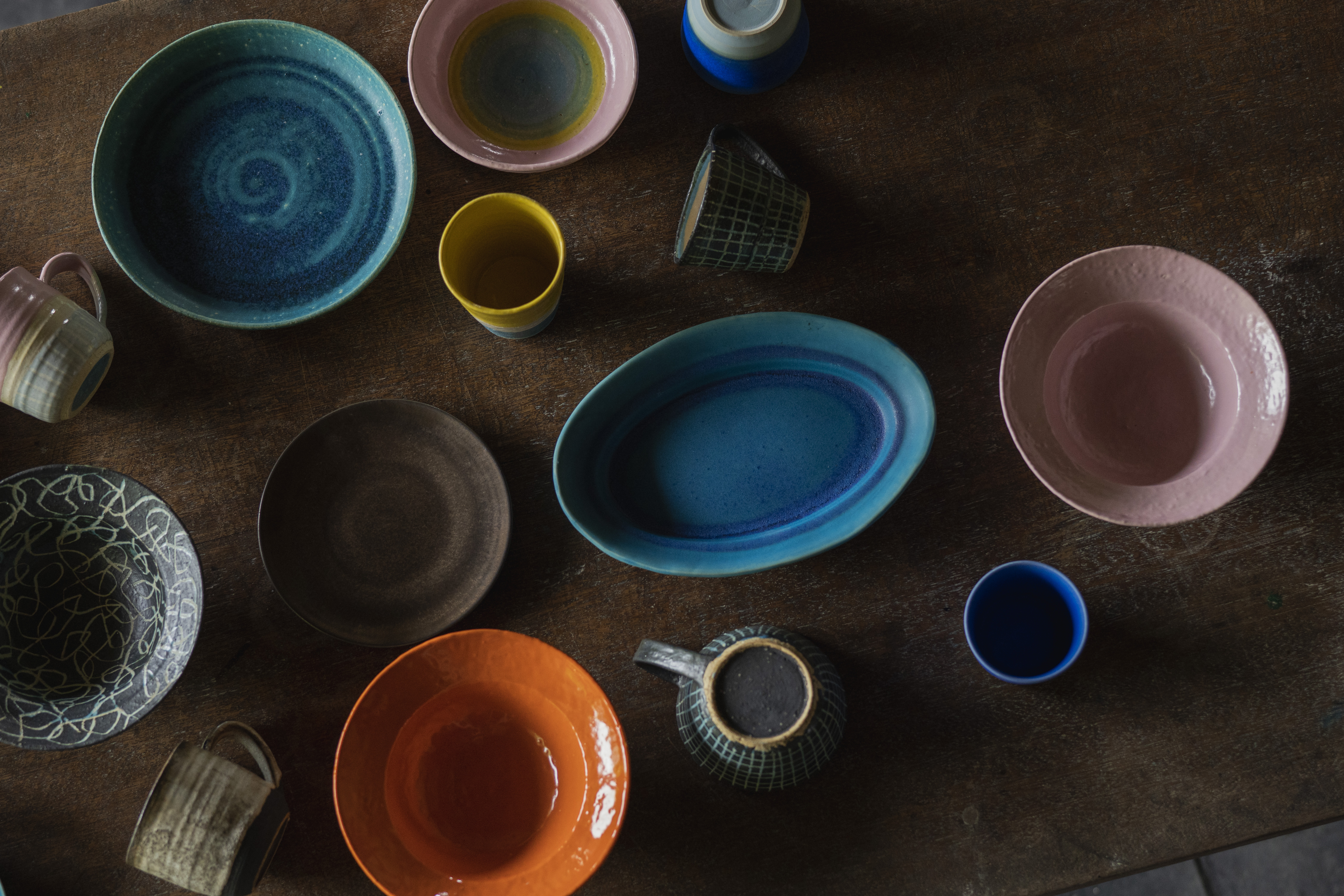 遙遠的海之彼方,潮水緩緩拍打著島嶼的邊界,五位來自沖繩的藝術家 —— 藍染 / inD5 大林憲弘、陶藝 / 金城有美子、織藝 / 長池朋子、紅型 / 田中紀子、吹製玻璃 / ff末吉清一、友利 龍,透過各自擅長的媒材,描繪著這片土地的故事,為場域演繹一場關於歷史、風土與人心的對話。