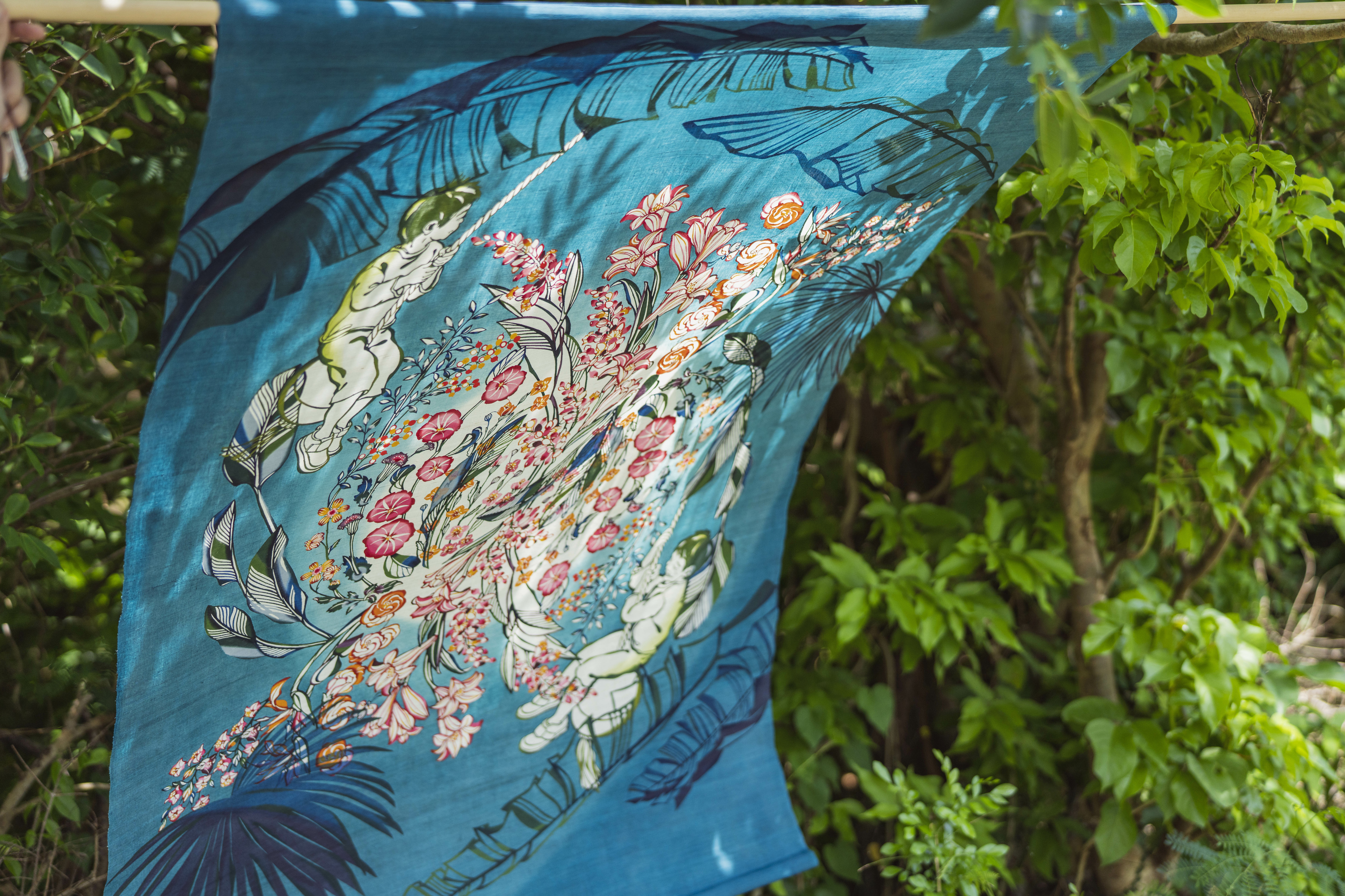 田中紀子,1996年畢業於沖繩縣立藝術大學染織課程(染),其創作兼具細膩的細節與大膽的構圖,擁有如同一幅畫般壓倒性的存在感。她的色彩彷若晴空中浮現的殘像,生動捕捉沖繩瞬間的印象,讓傳統紅型在她的詮釋下展現出嶄新的生命力。