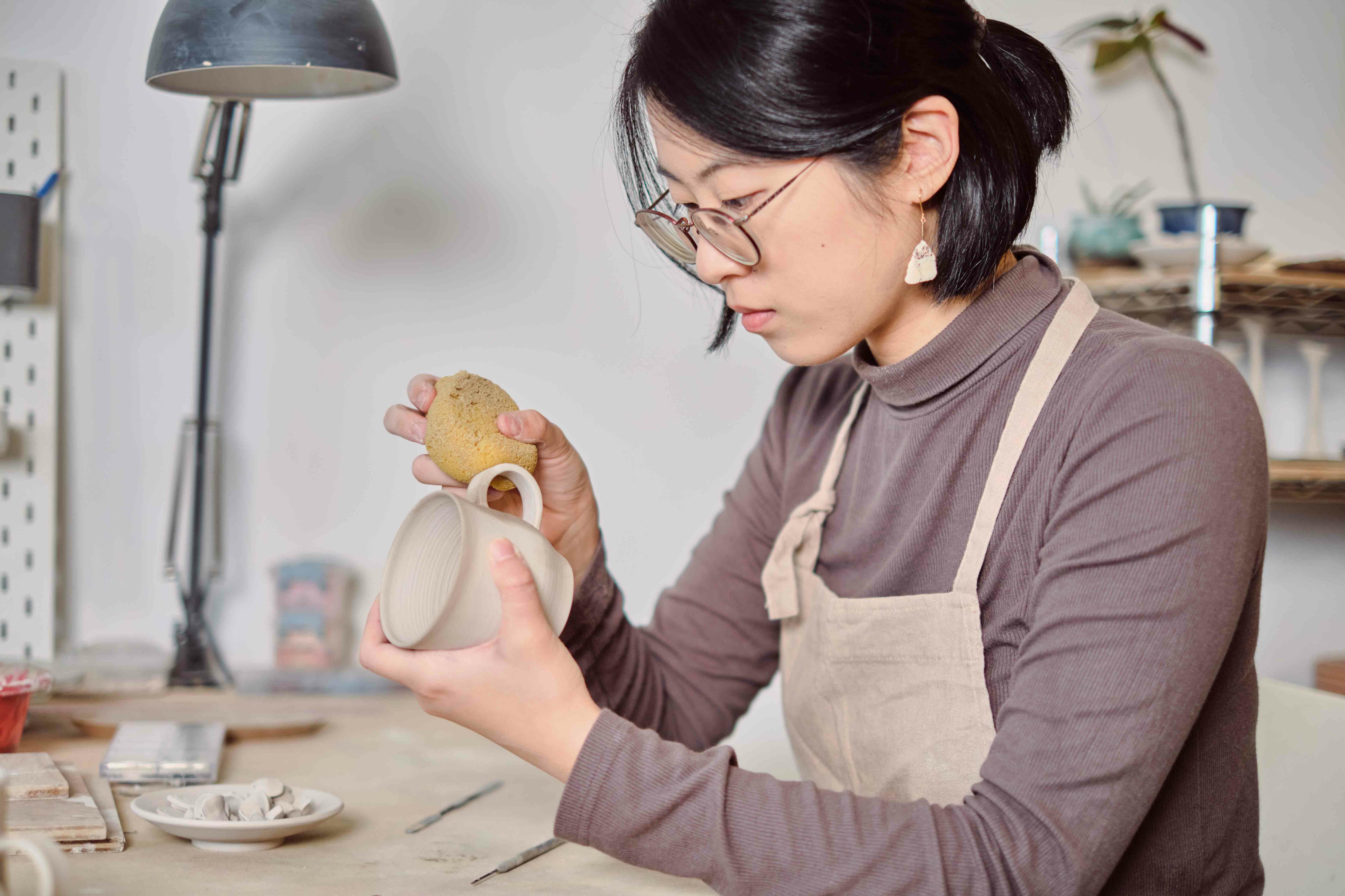 陶藝家 陳穎,2013年畢業於新竹教育大學藝術與設計學系創作組,現從事美術教學與創作,工作生活於桃園大溪。喜歡可以親手觸碰到的媒材,對於陶瓷直接與間接的特性很著迷。透過雙手,期望製造出安靜不喧嘩,帶點怪趣的陶瓷物件。