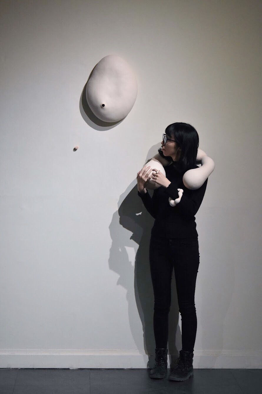 創作主題多從自身出發,而在探索的過程中,「性別」和「心理」也自然成為了創作的主軸之一,在過程中,將自身纖細、敏感、柔軟,以及那些深潛於內在的思緒,經歷多次由內到外的反芻、拆解、重組,再延伸至陶瓷上,使自身與土融合為一,將作品轉化為更為有機且寬廣的存在。