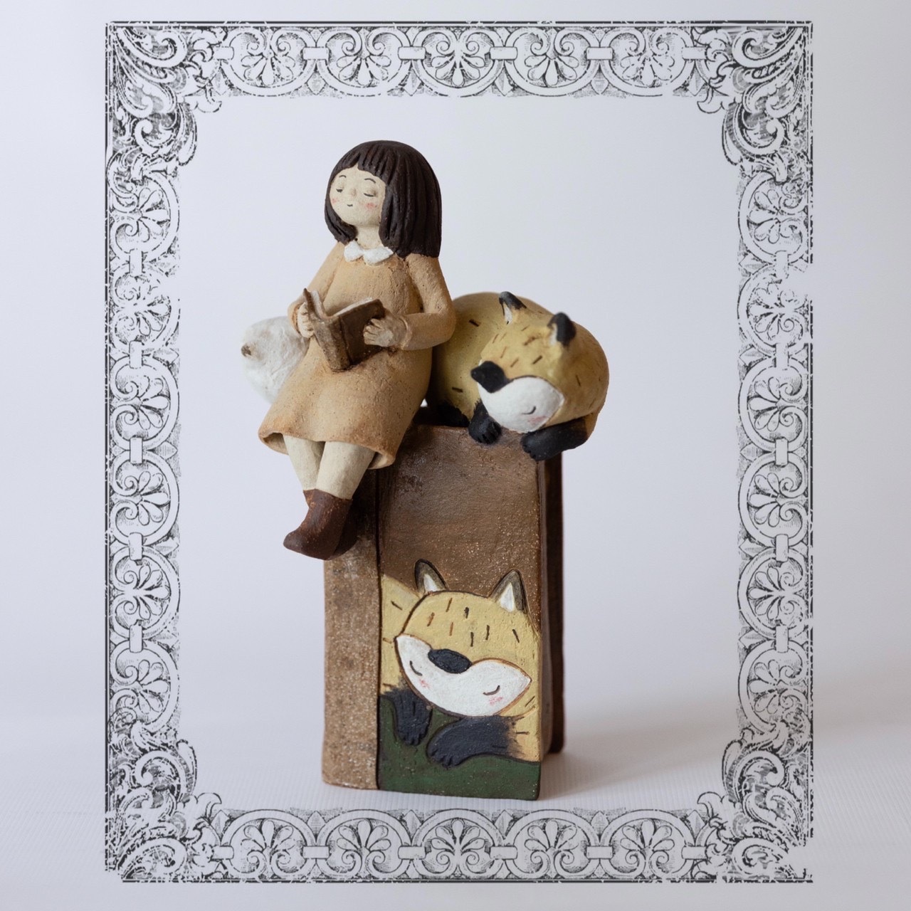 長久以來我一直都很喜歡溫潤的插畫及繪本,當認識陶土時,我希望能以同樣溫潤的陶土來繪畫以及說故事,所以在作品中常是一個個的角色構成一幅畫面,敘述出一段又一段有溫度的故事。