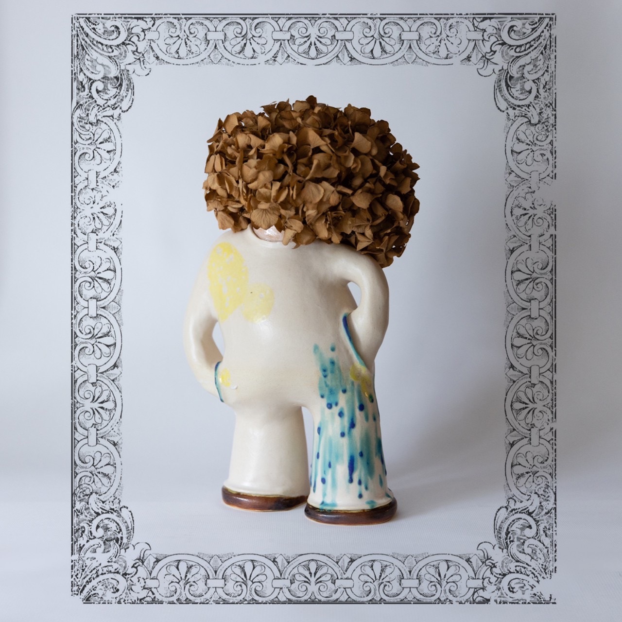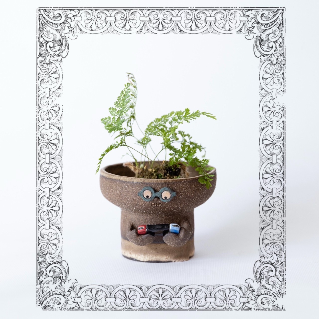 本次展出作品以創造各種小人物盆器,搭配上綠植後,予陶與植物之間相輔相成,呈現出新的生命感。