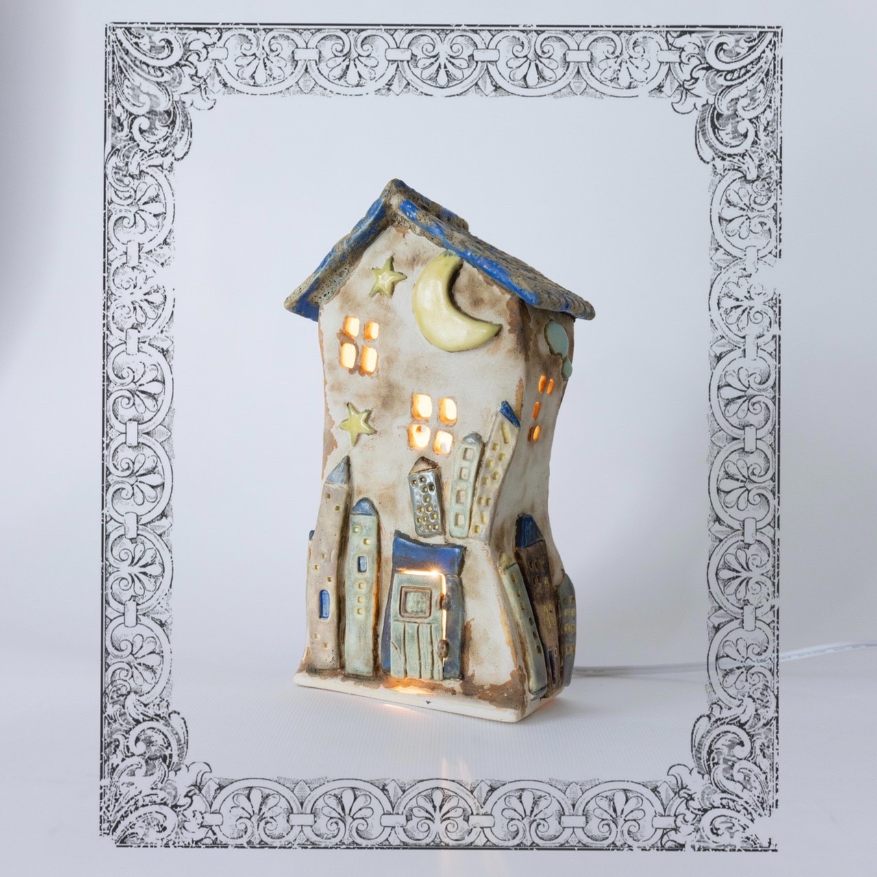 本次展出作品「高地的童話屋」則是延續之前的想法,持續創作出給人溫暖和療癒的小陶屋。