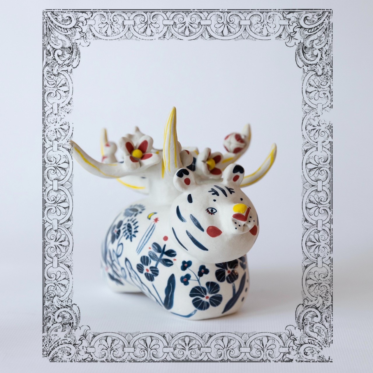 喜歡以動植物為主題,並在塑形成動物的陶器上繪製鮮豔的花草,尤其以老虎為主要的設計,將老虎的神秘加上豐富的色彩元素,希望帶給使用者溫暖的氛圍。