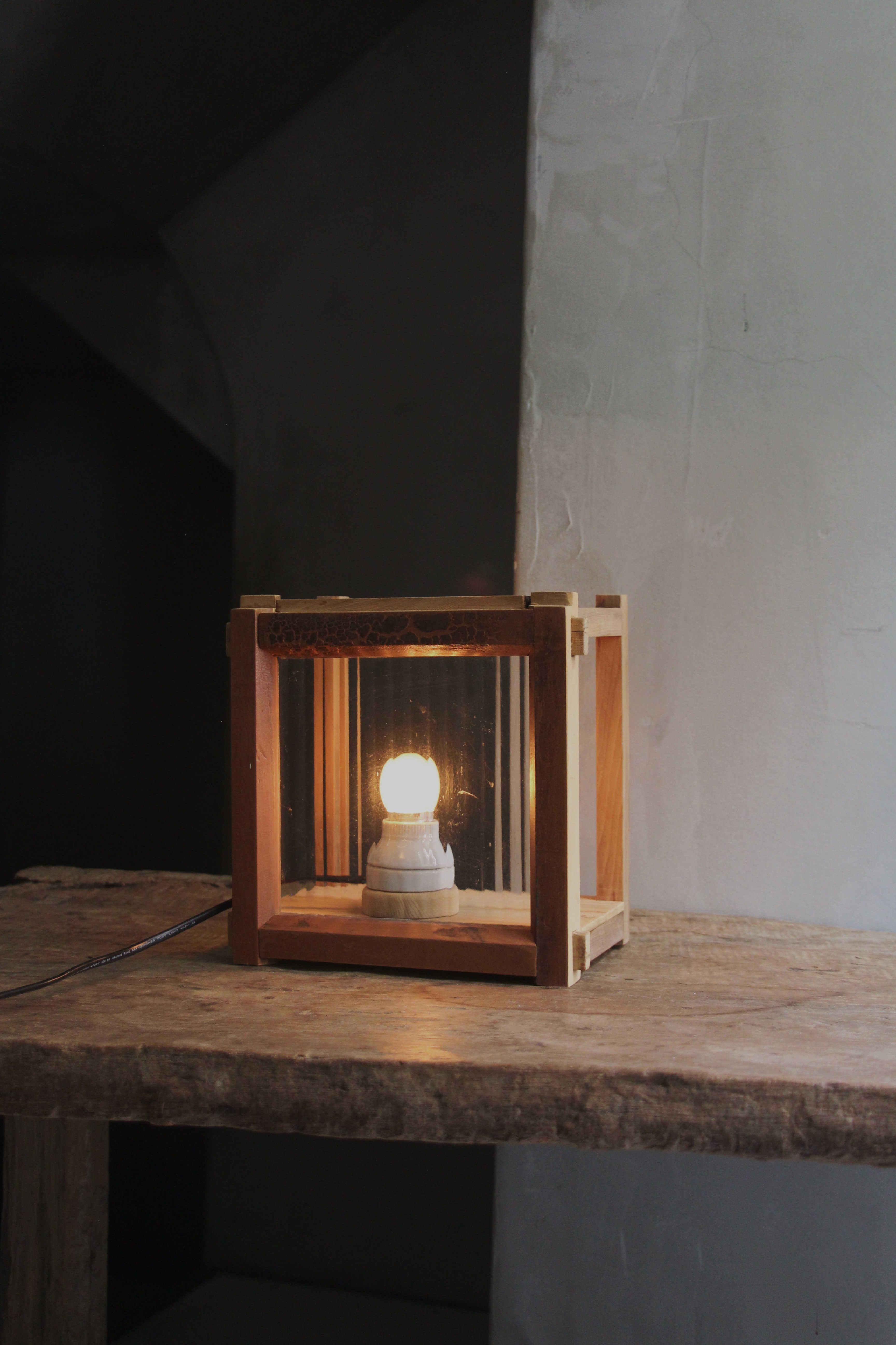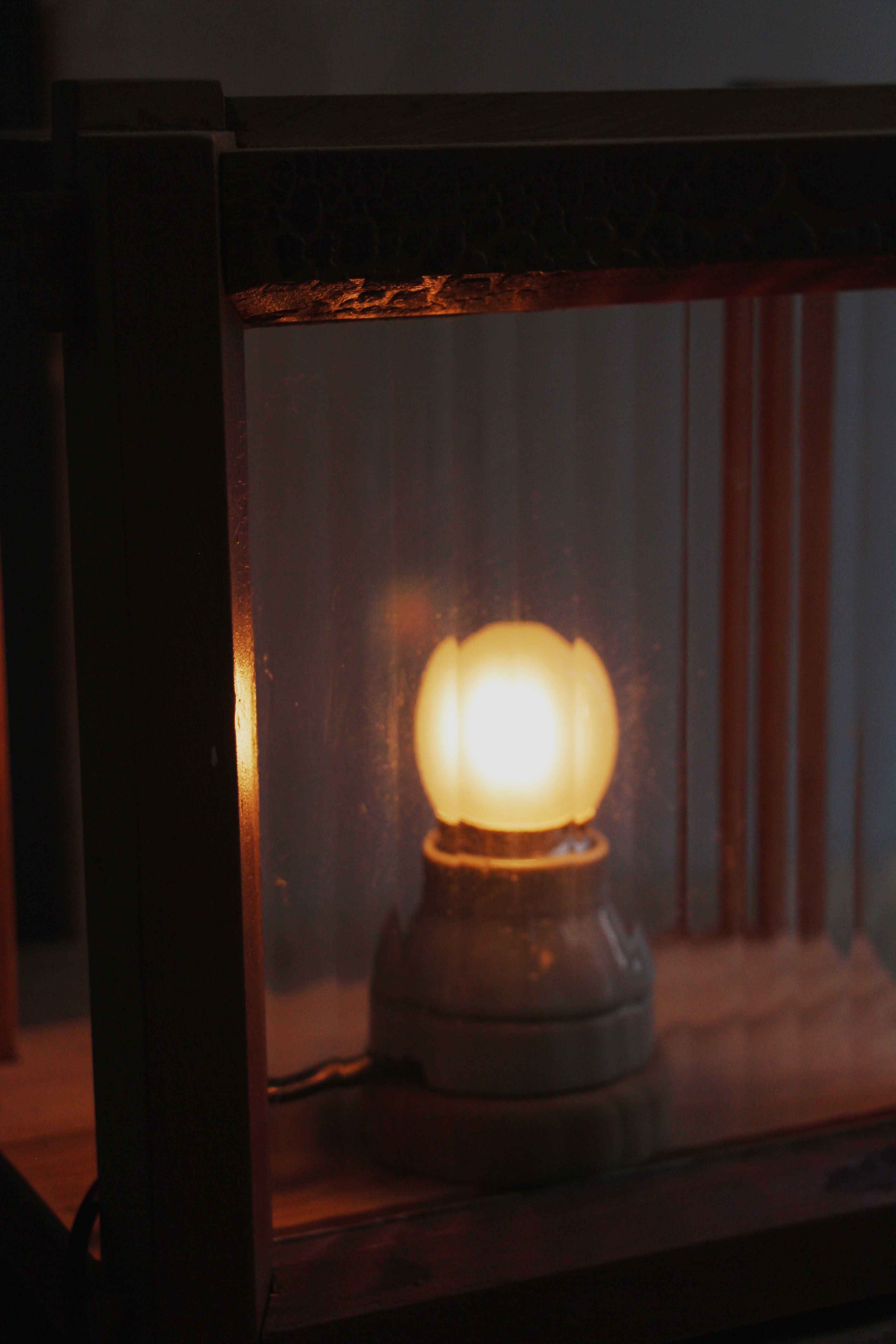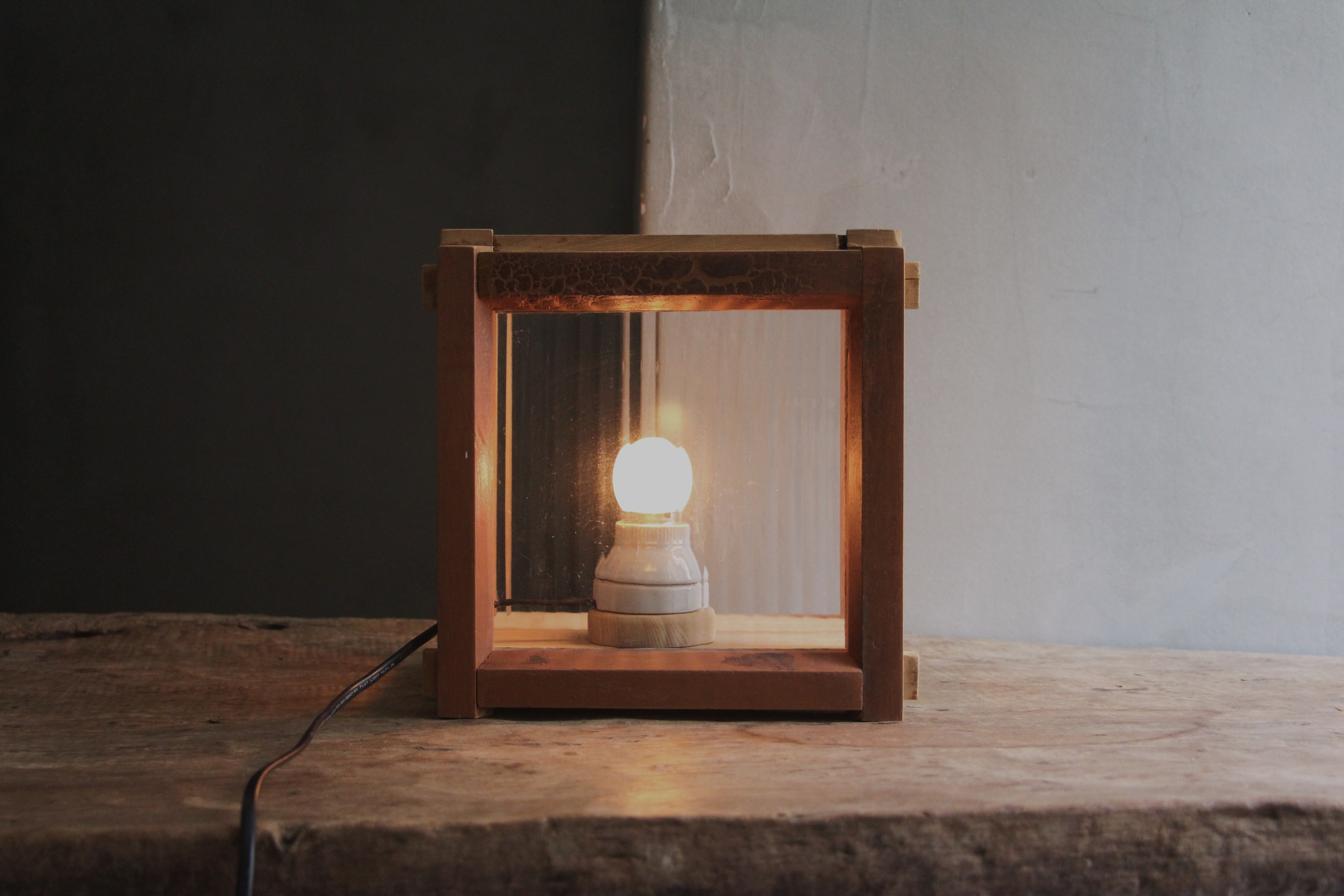 木窗、抽屜、直紋玻璃,台灣檜木、附5w燈泡