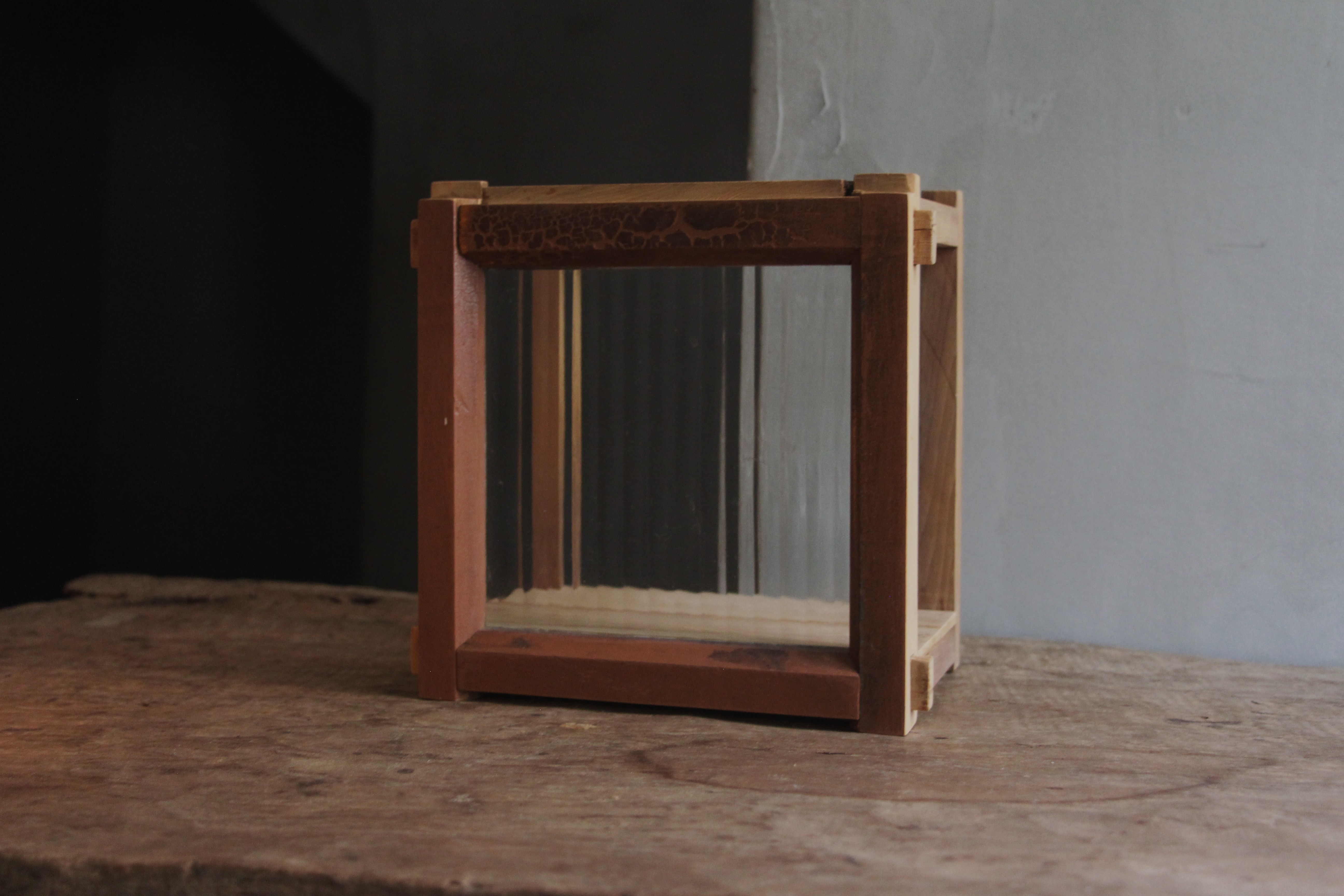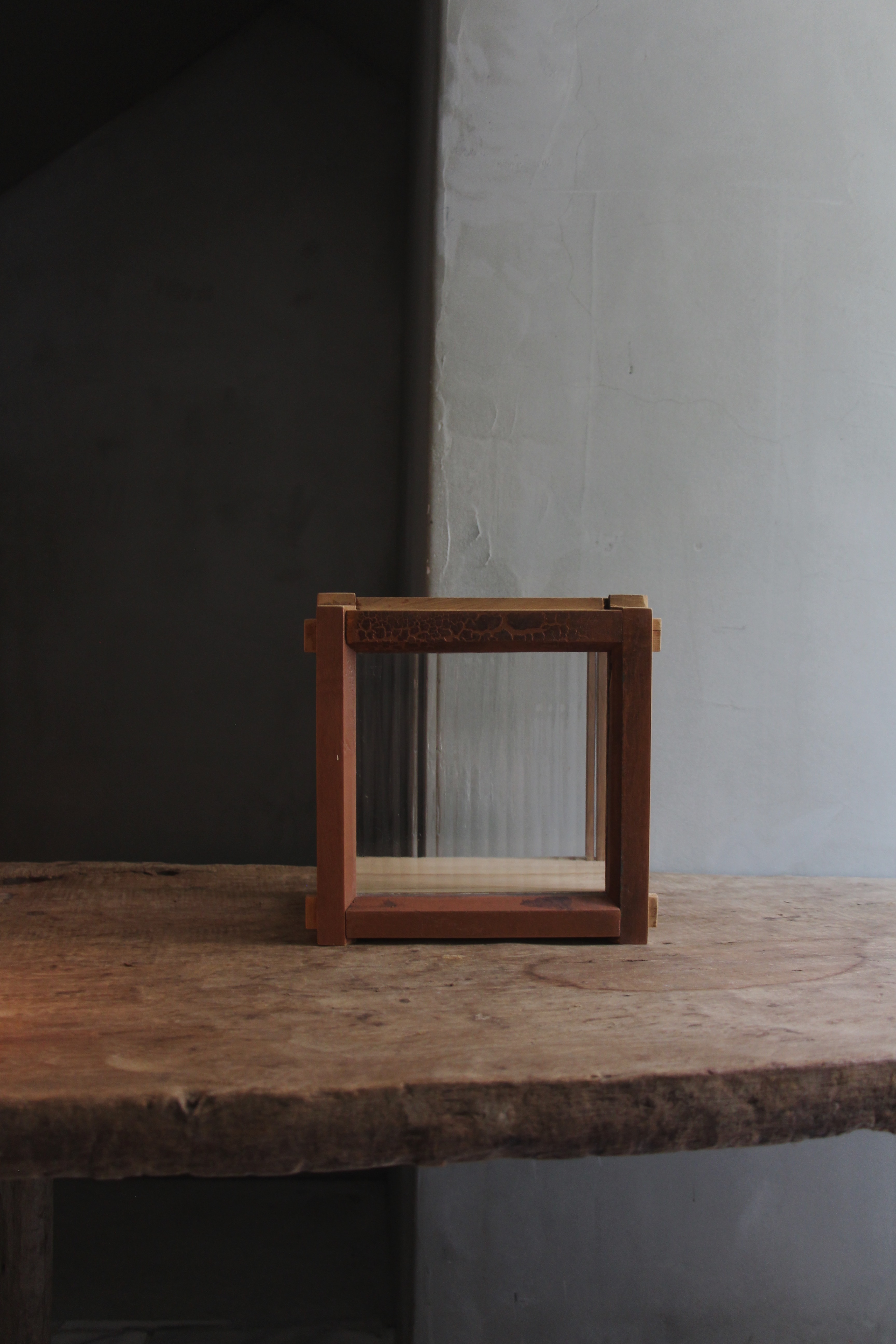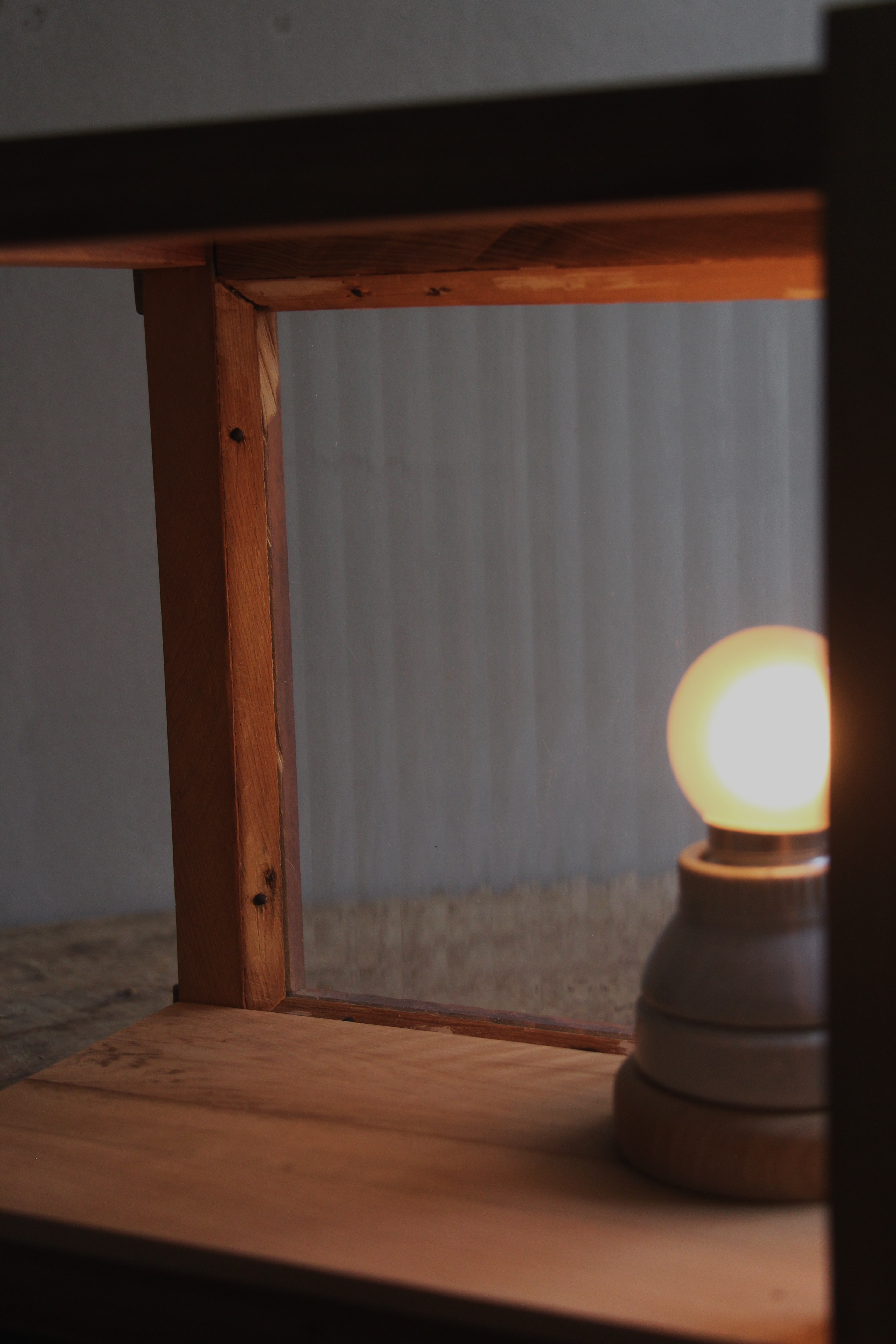 木窗、抽屜、直紋玻璃,台灣檜木、附5w燈泡