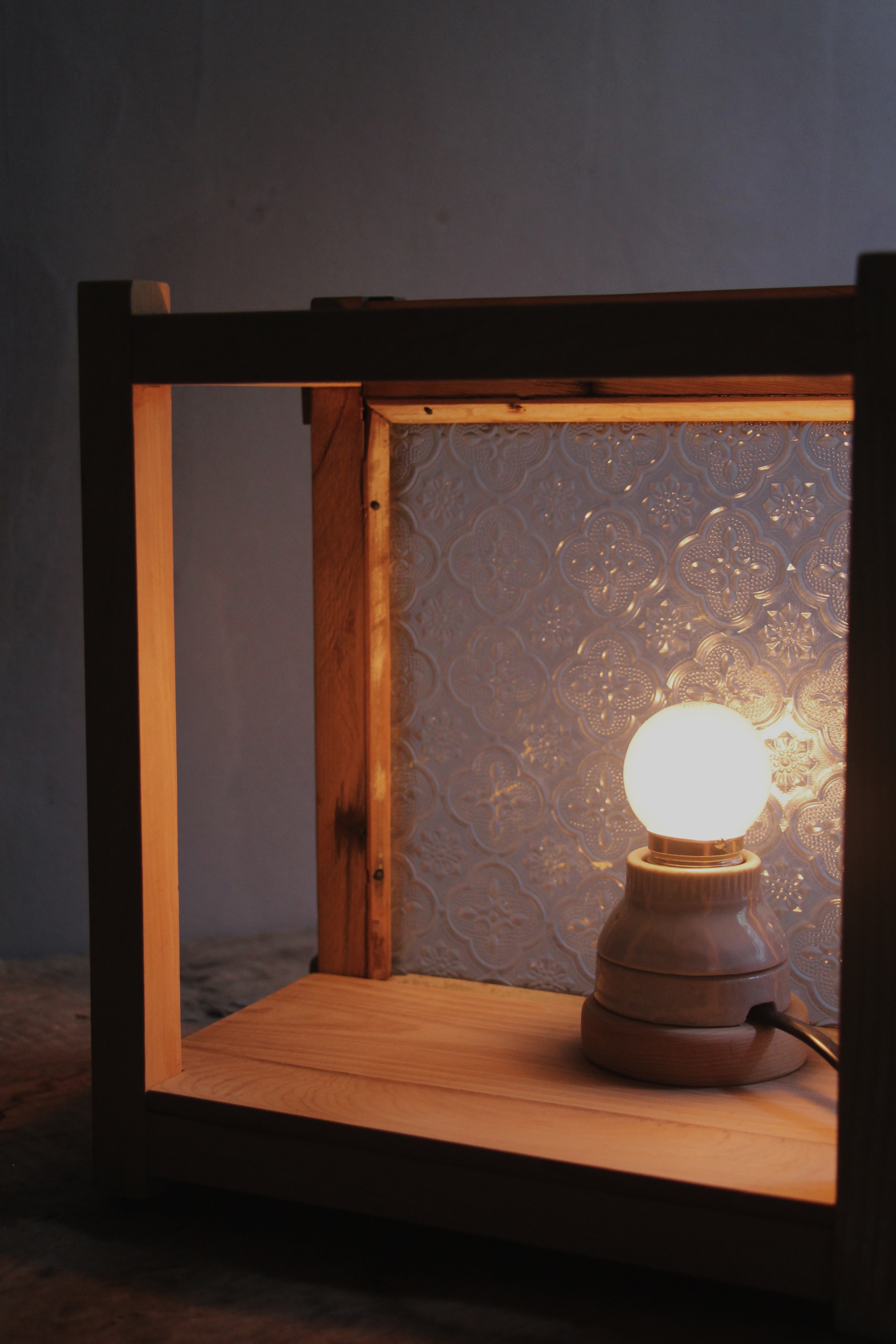 木窗、抽屜、海棠花玻璃,台灣檜木、附5w燈泡