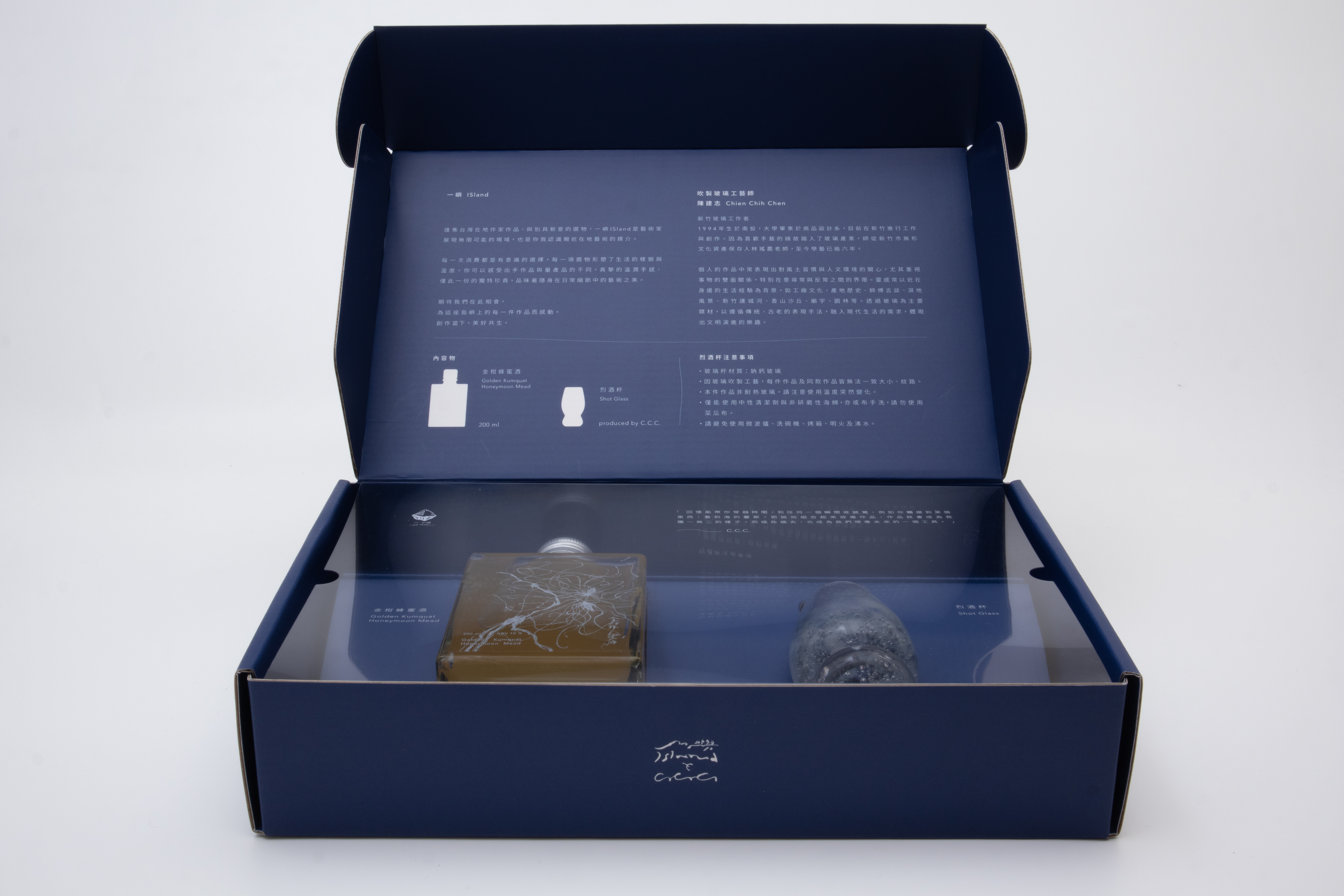 「 一嶼ISland × 陳建志 C.C.C. Glass 藝術家聯名禮盒 」為我們再度與優秀藝術家合作推出的限量禮盒,這次,我們邀請到《吹製玻璃工藝師 陳建志 Chien Chih Chen》共同探索傳統工藝與現代生活的交融火花,將飽含時光與手藝的精華作品,輕盈地融入送禮的心意,期待與注重生活美學的你我相連。