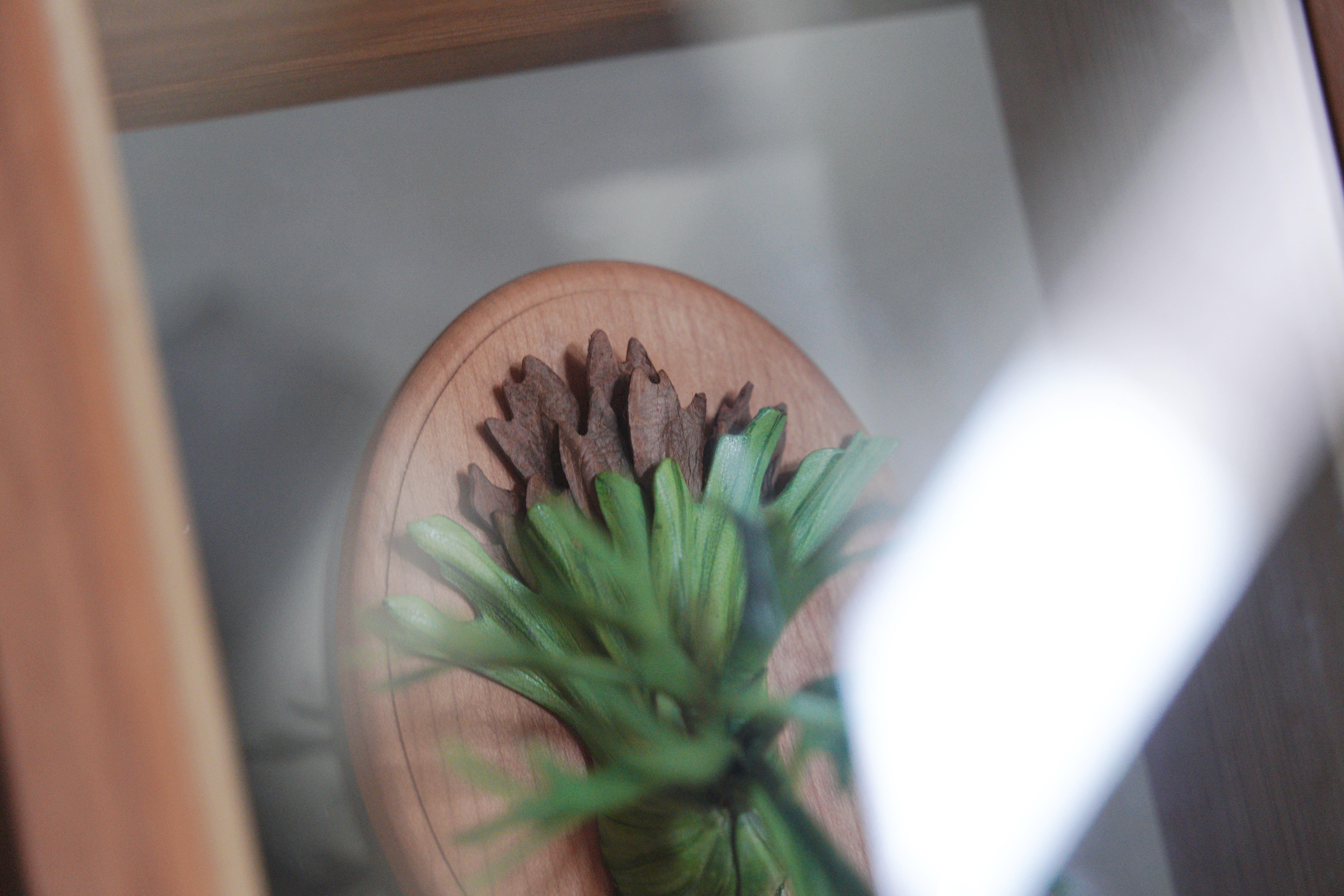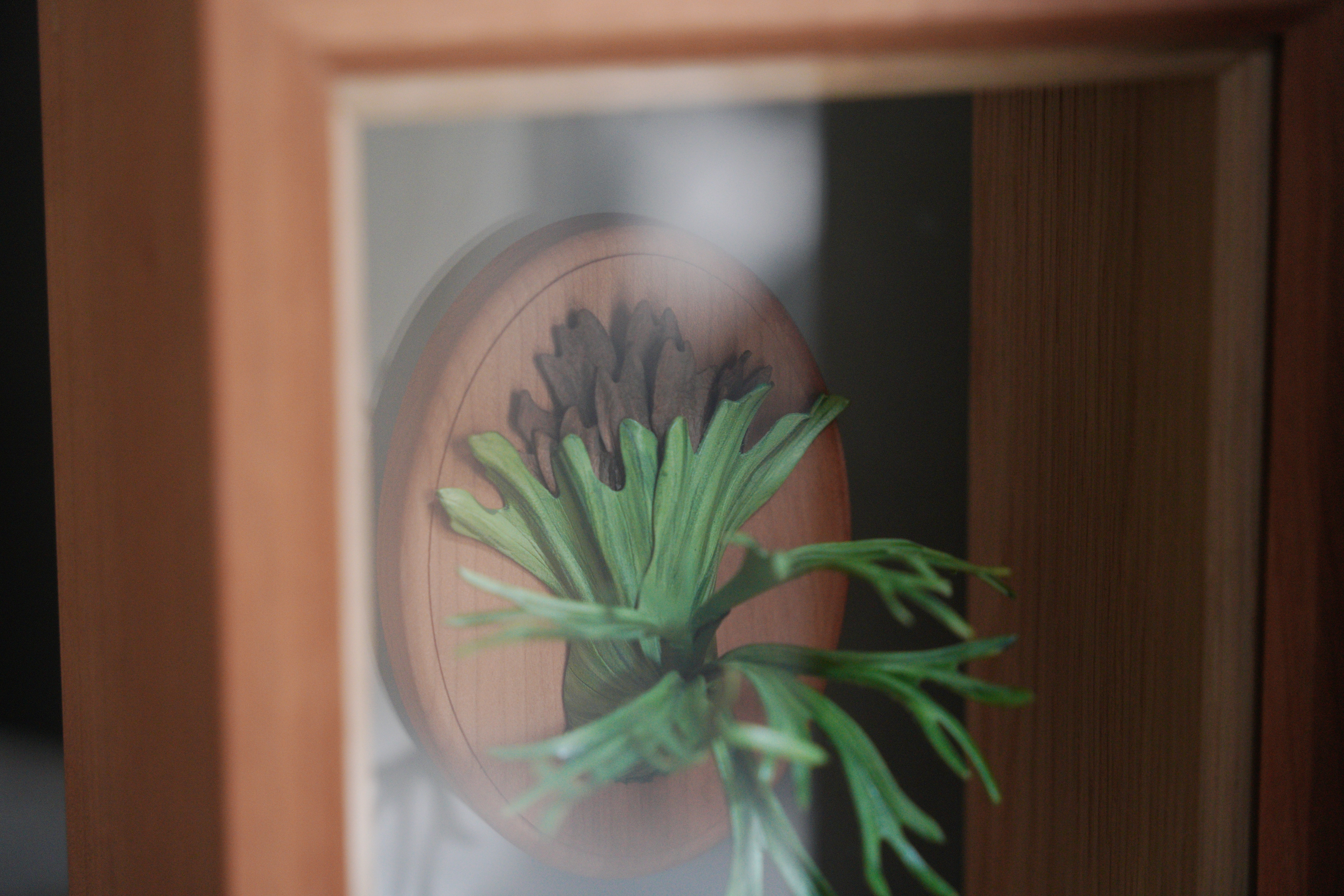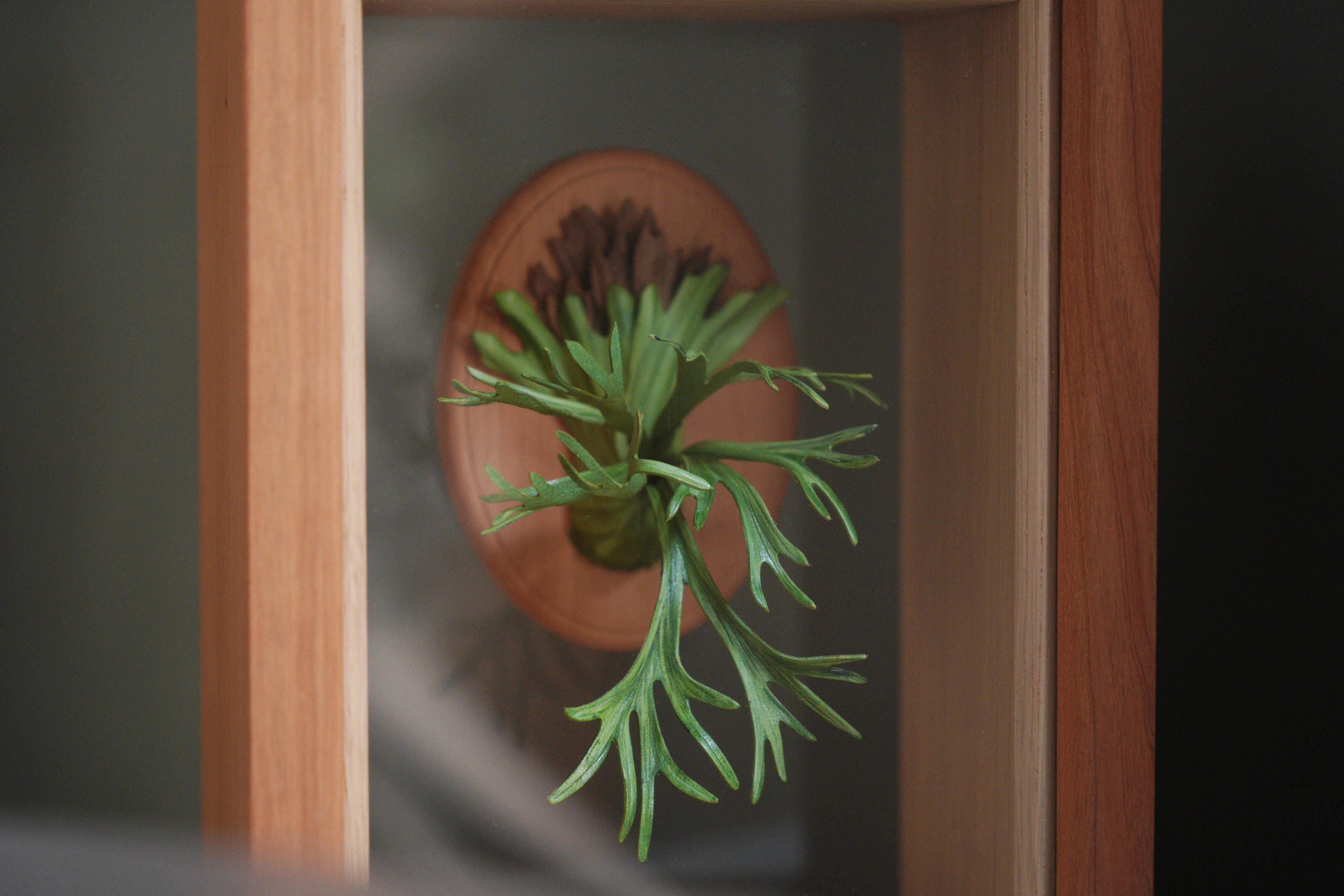 經典的爪哇鹿角蕨,框進櫻桃木的手工相框內,前面為玻璃,後為壓克力背板。