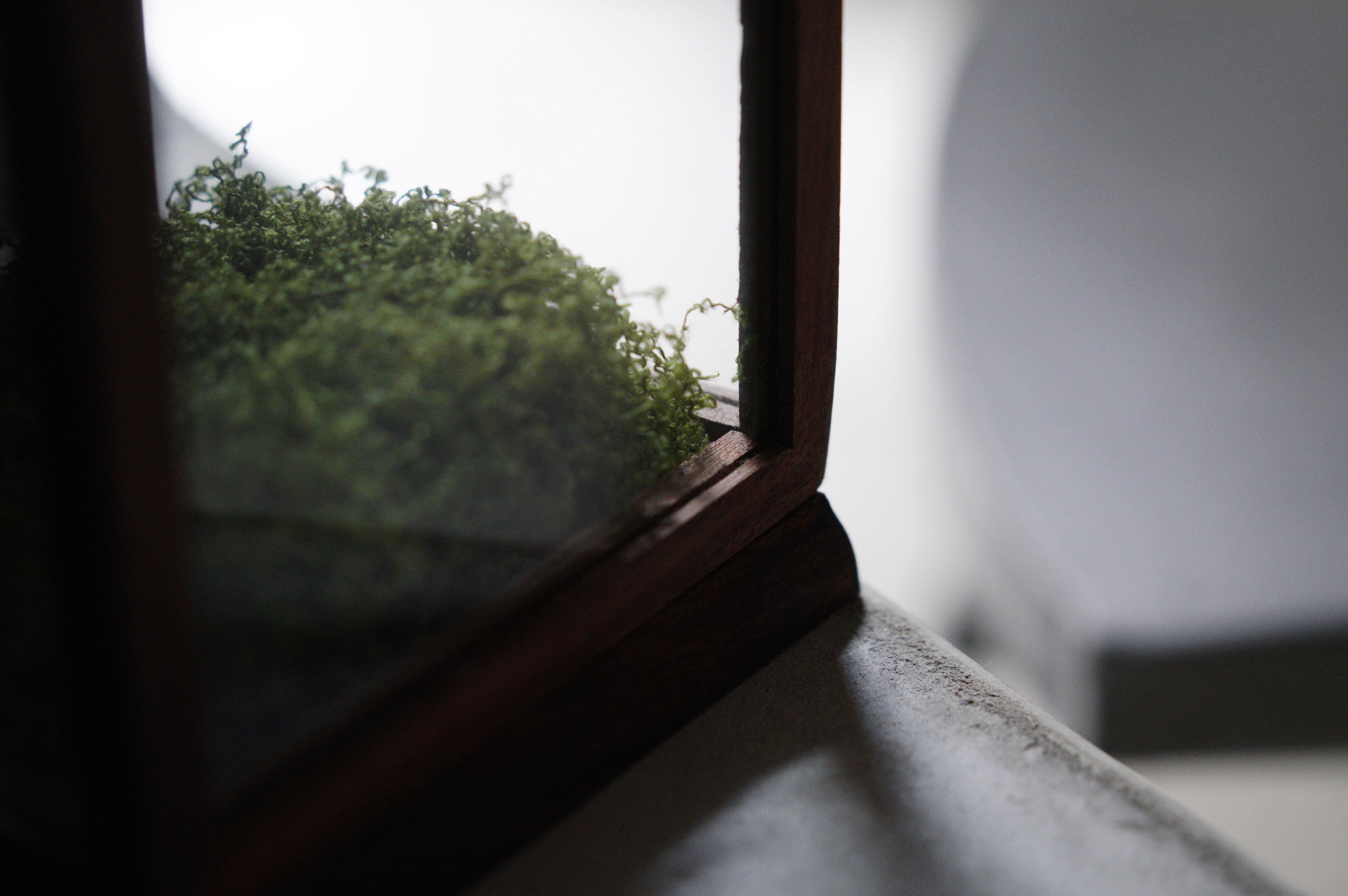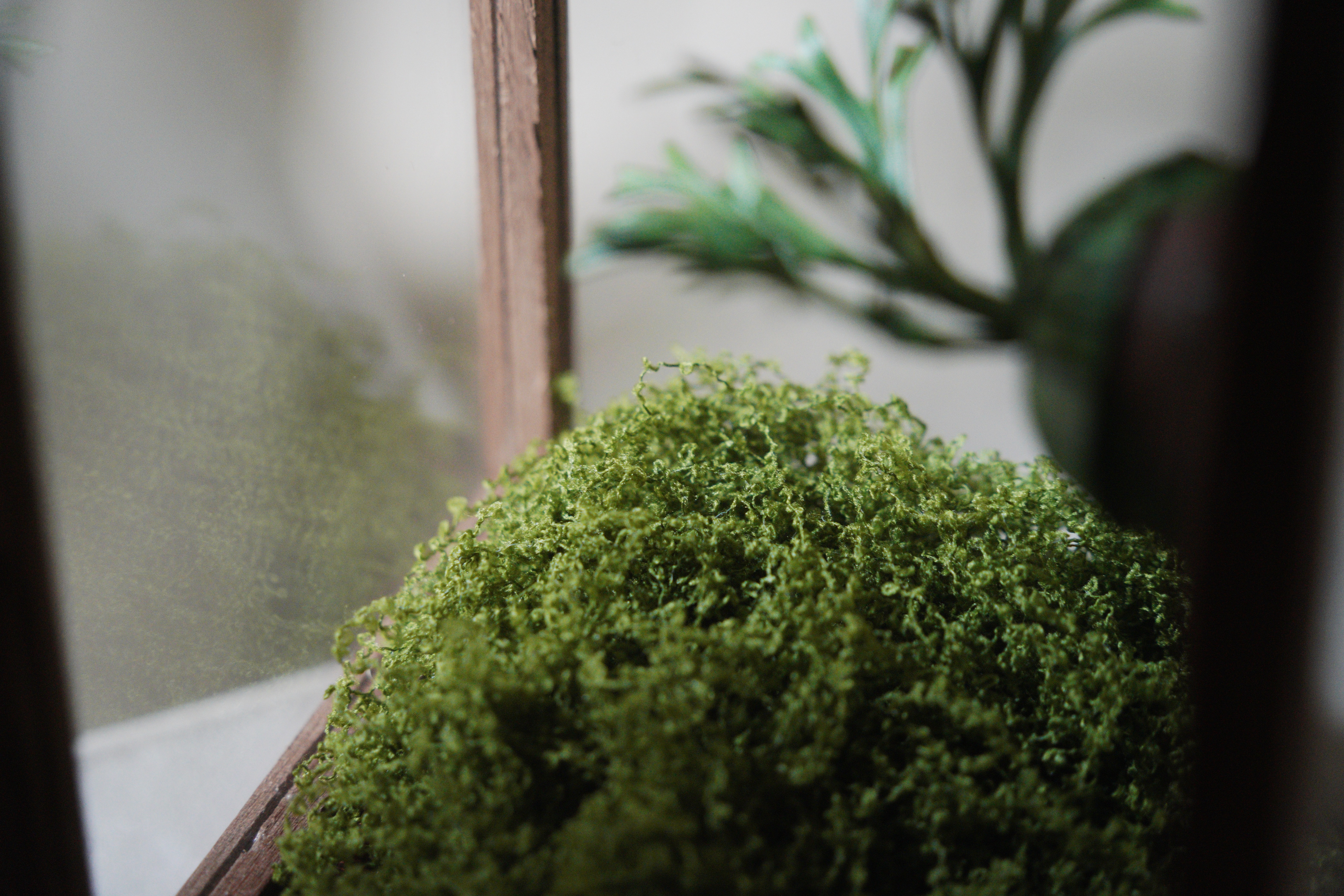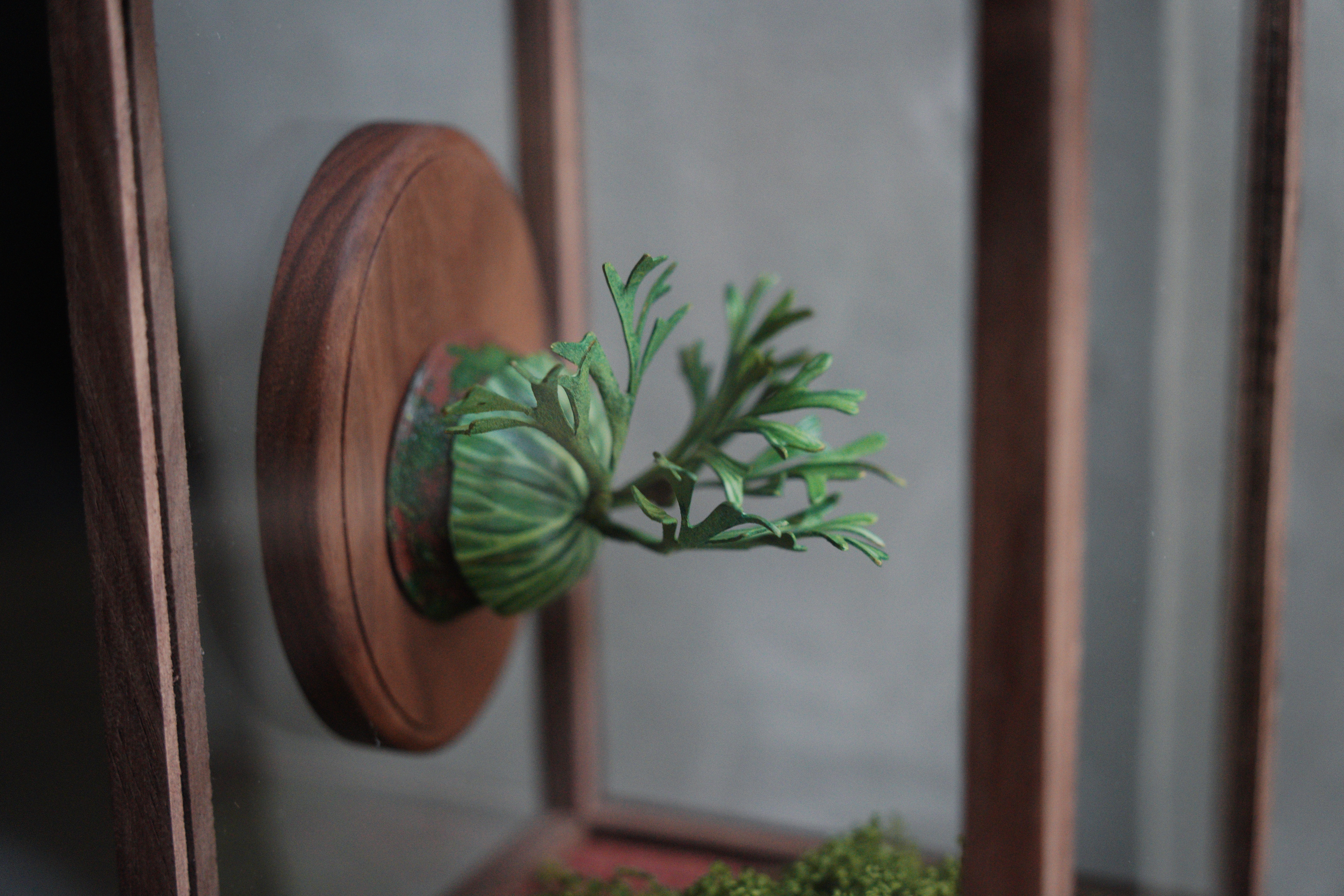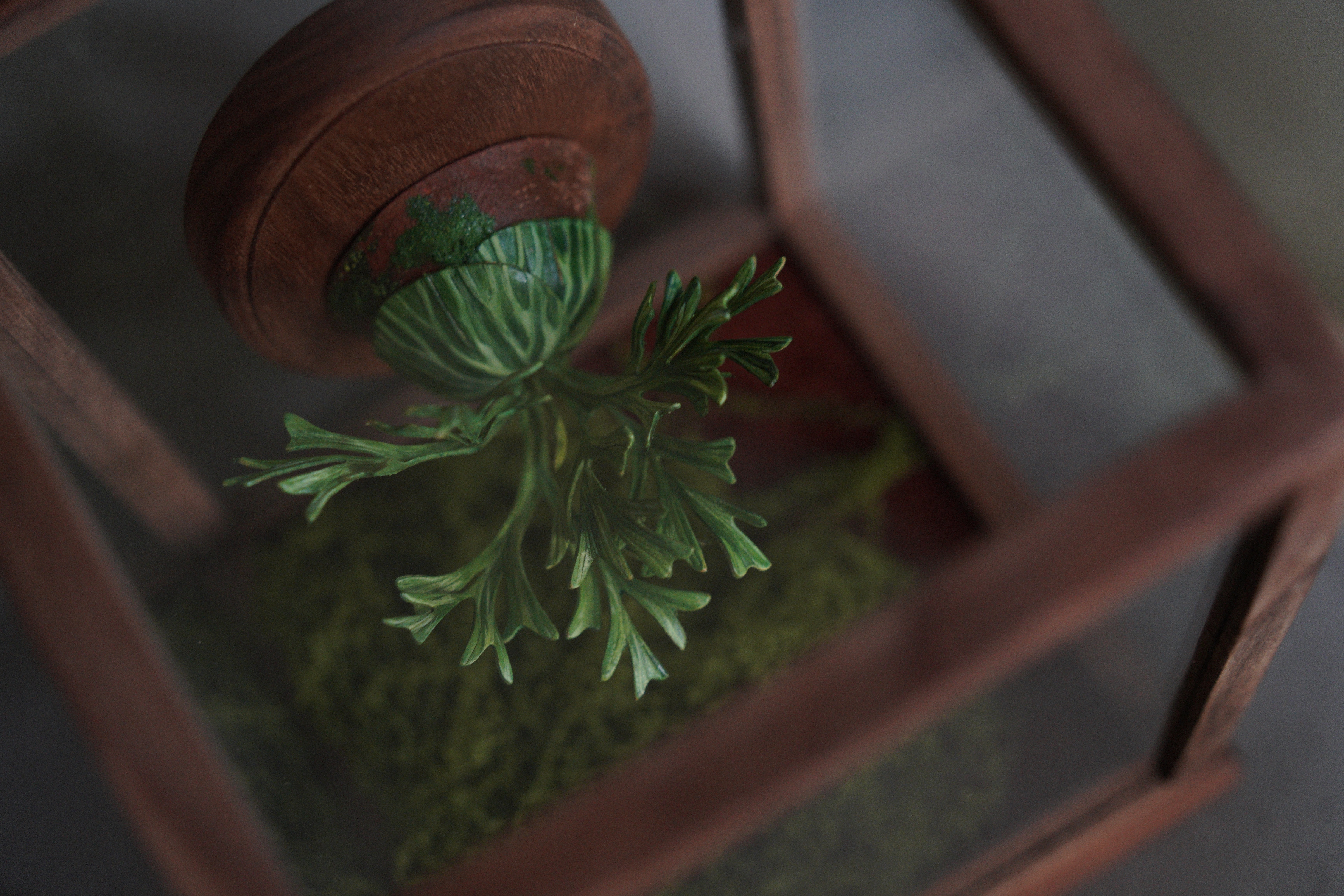 亞猴鹿角蕨,還有像湯匙的孢子葉,這次搭配五面玻璃的展示和,透光性更加,底下的青苔也可以打開來做調整。