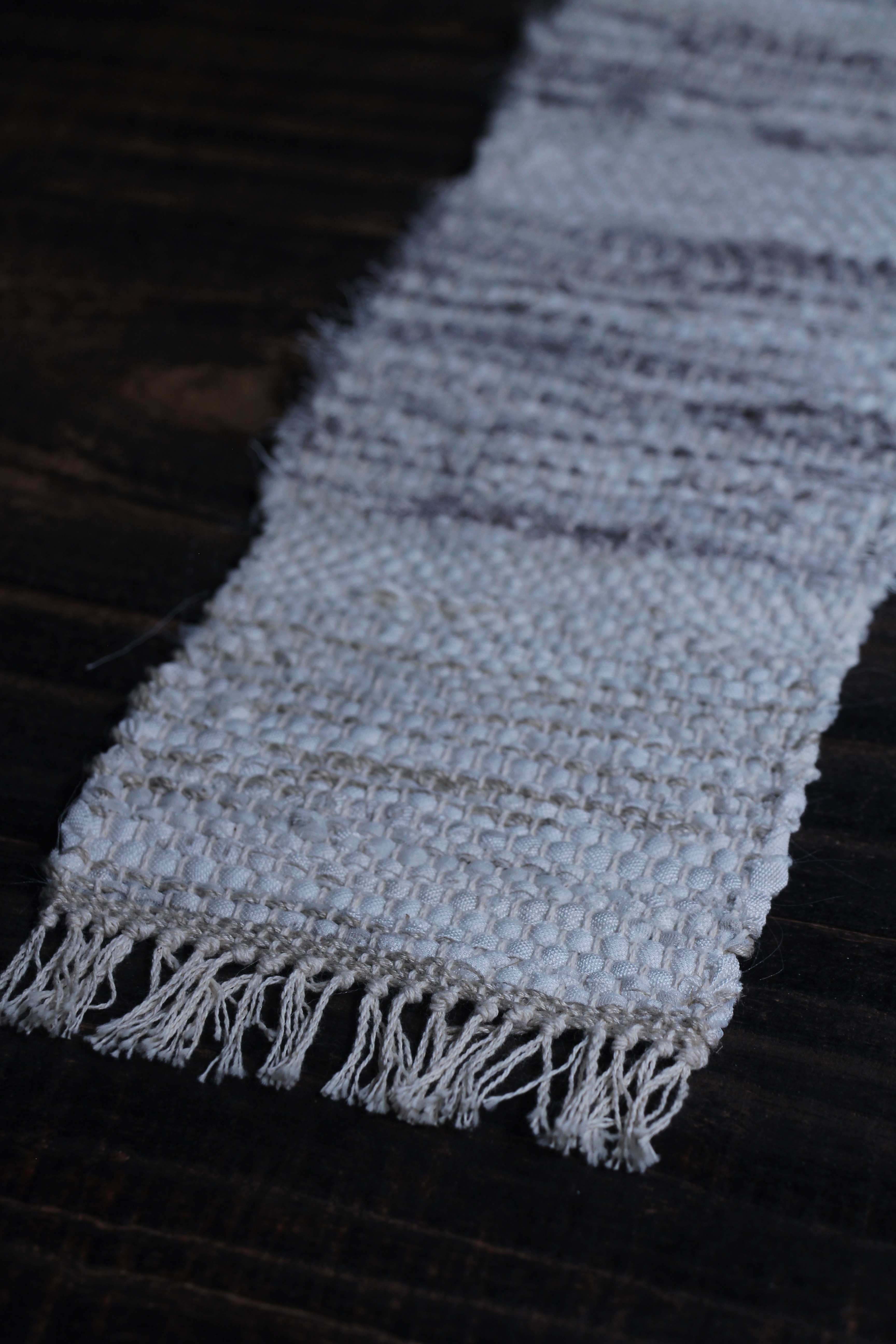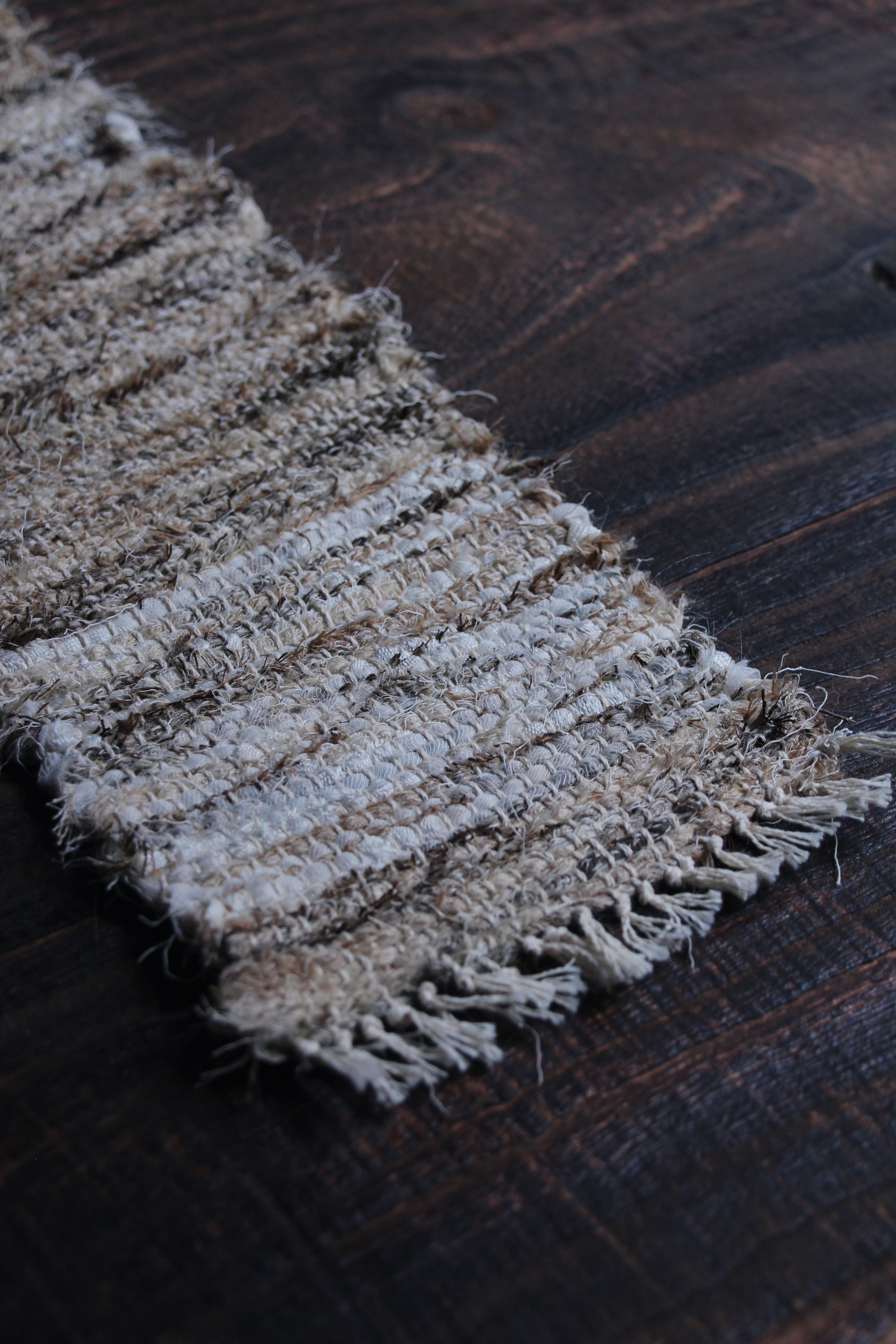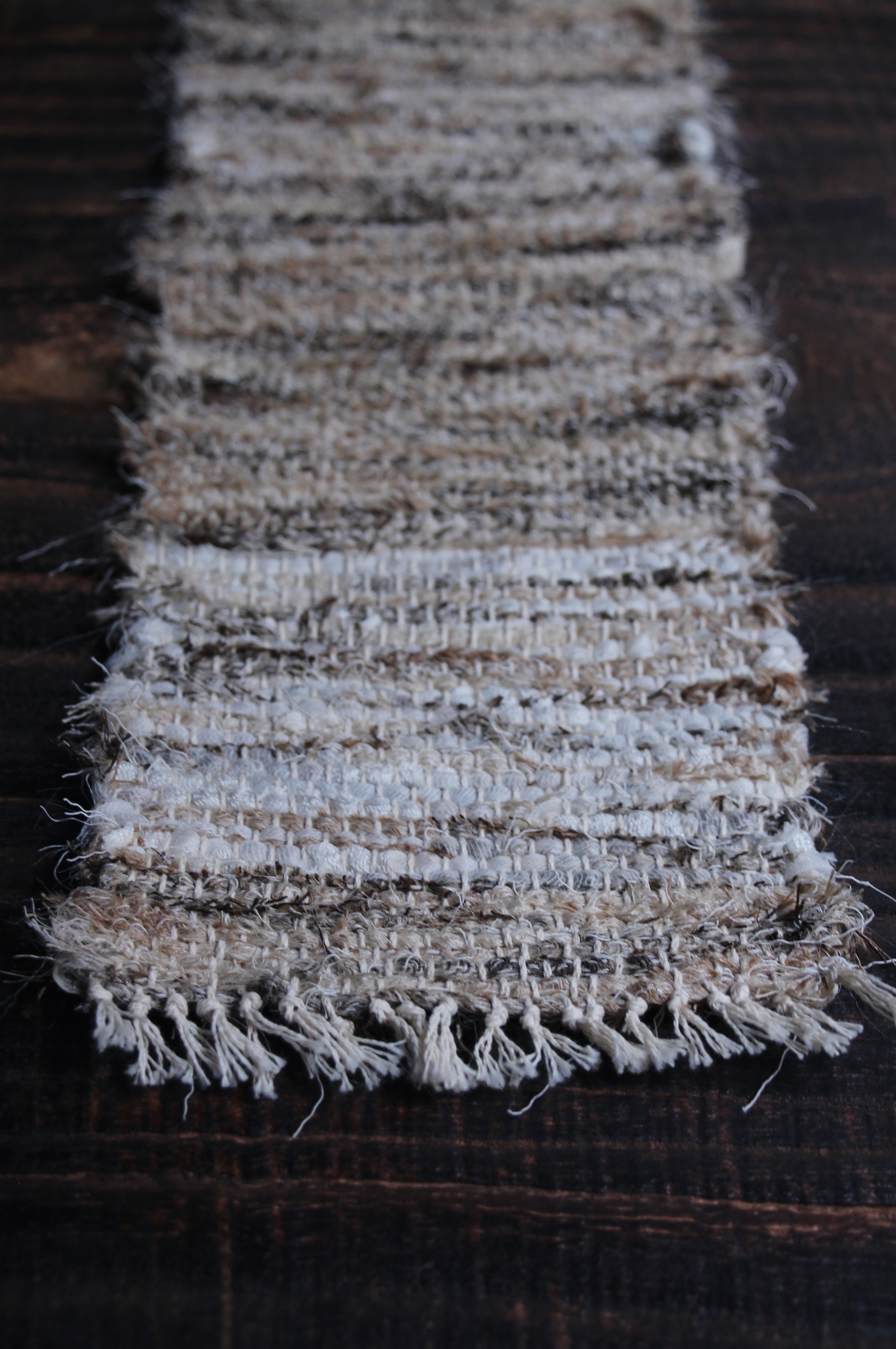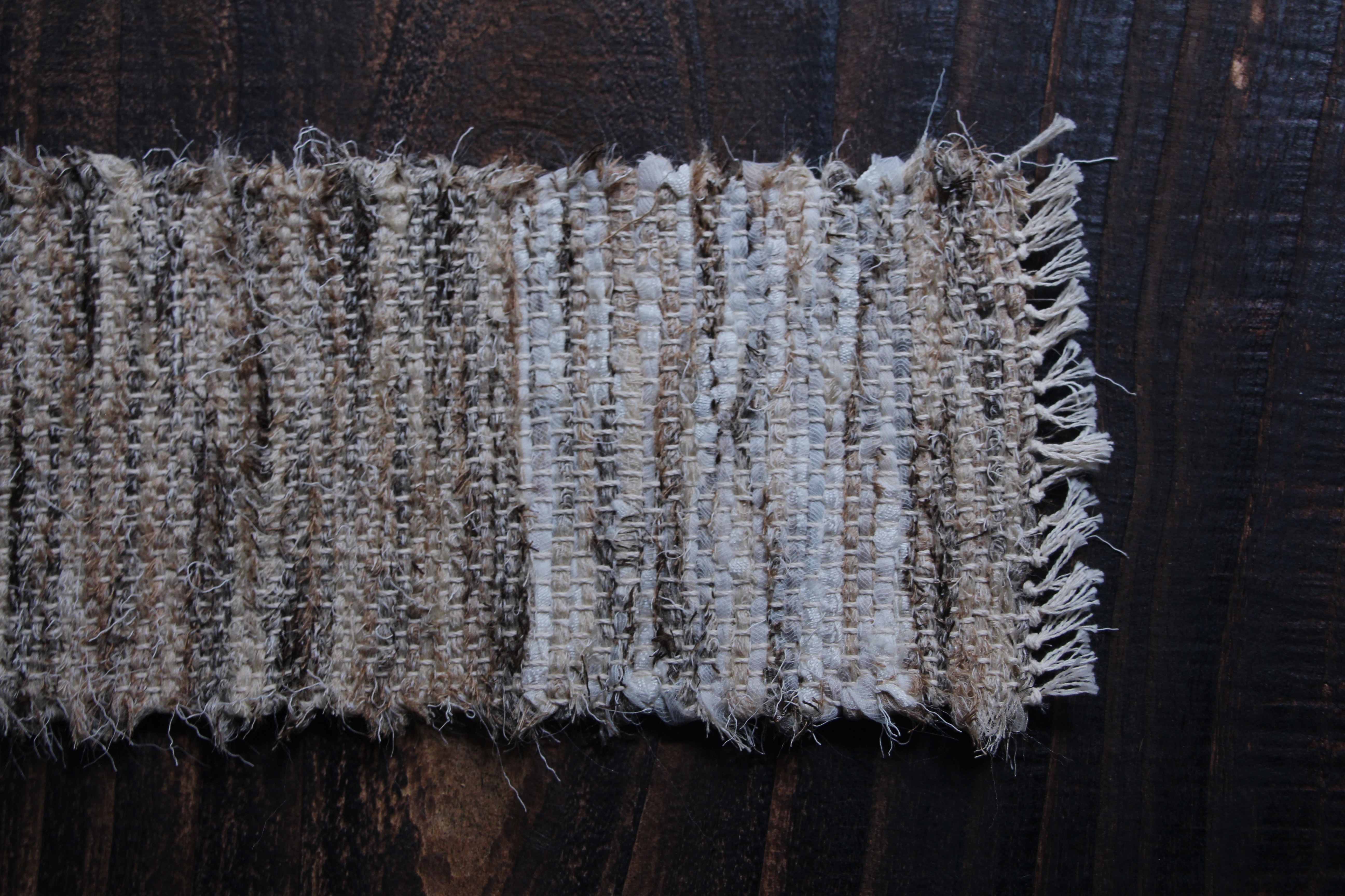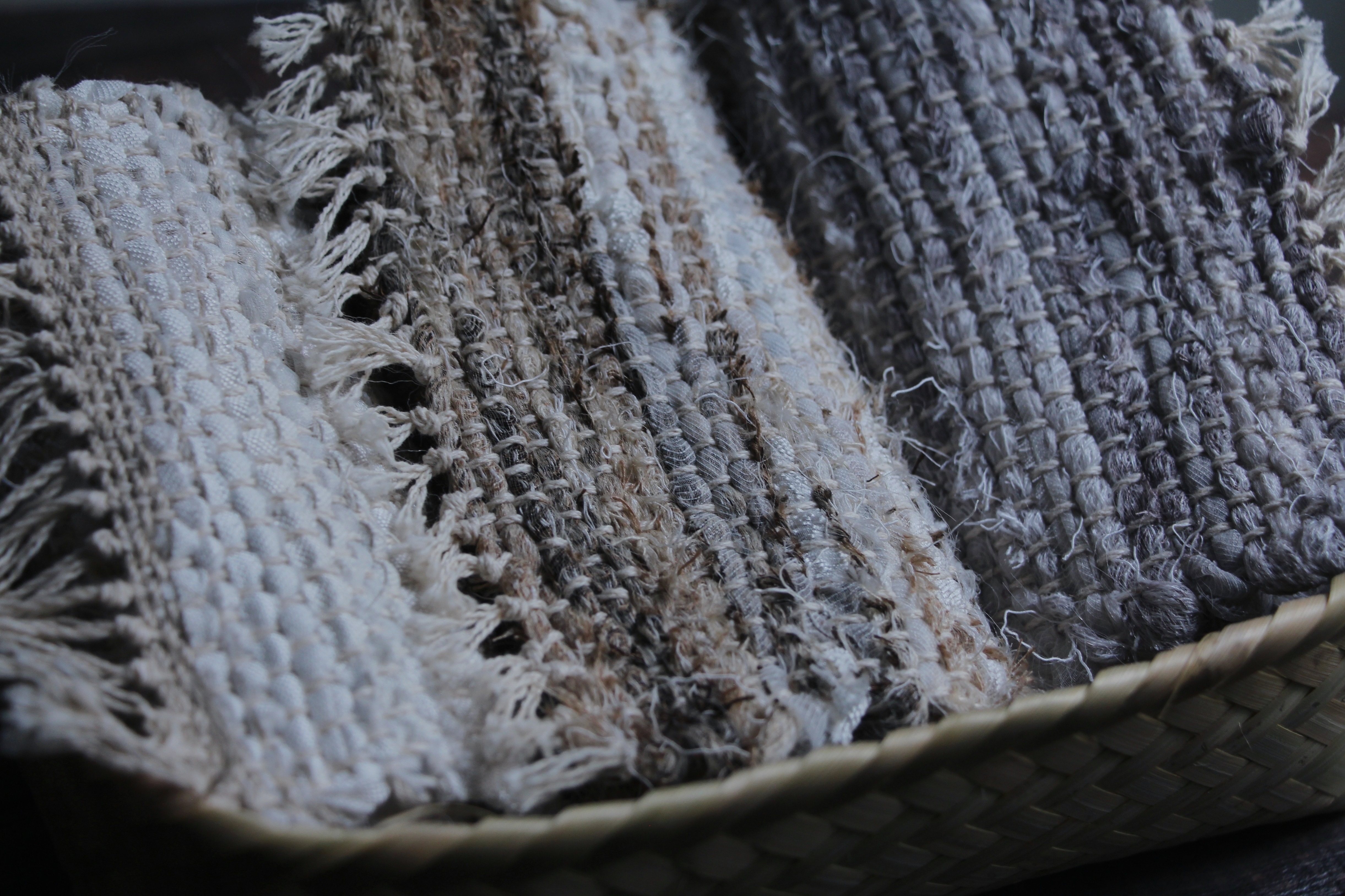 以自然素材實驗了織品的可能性,同時將生活的韻律融入作品,藉此傳遞平靜的能量給使用者。