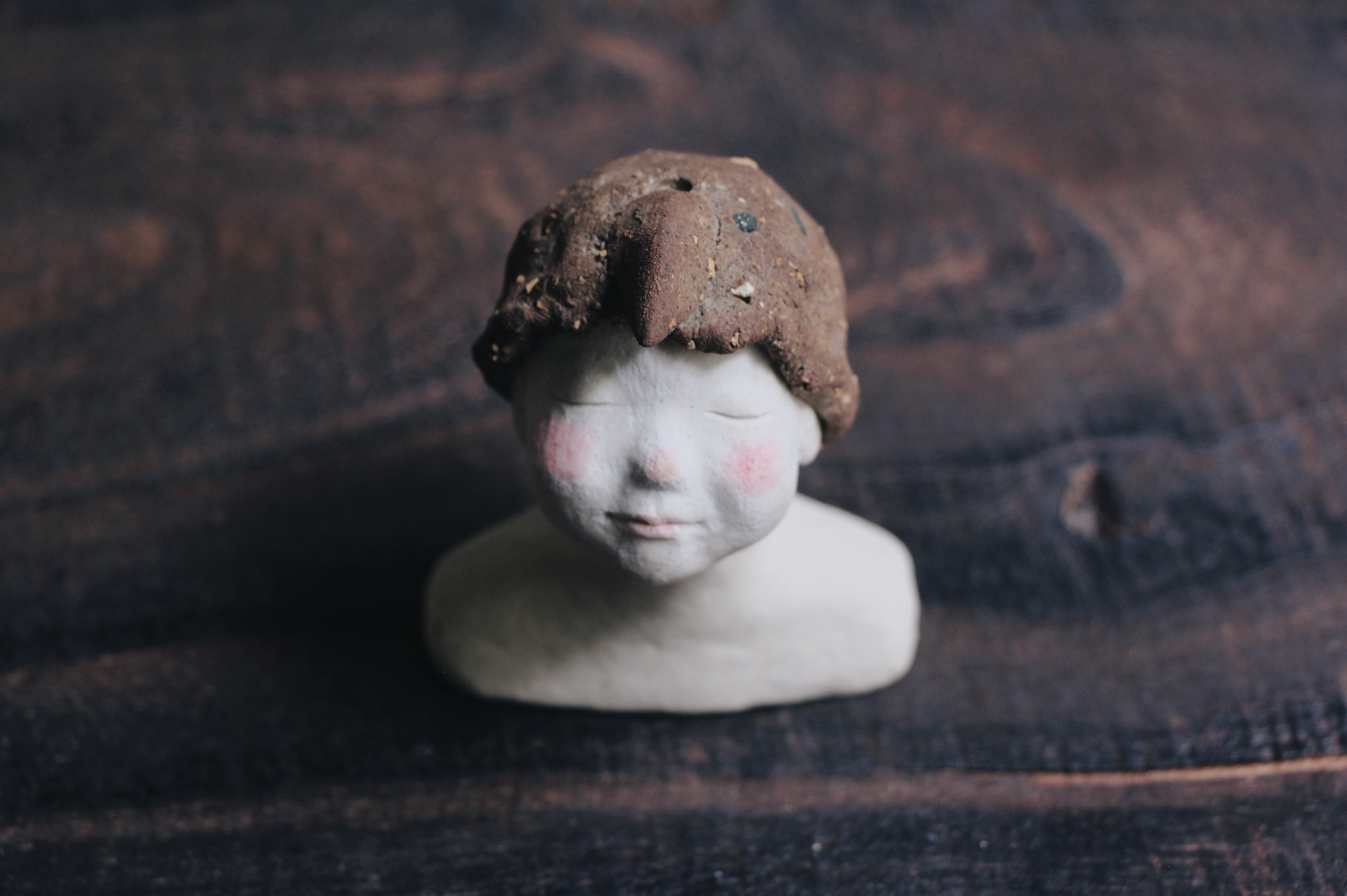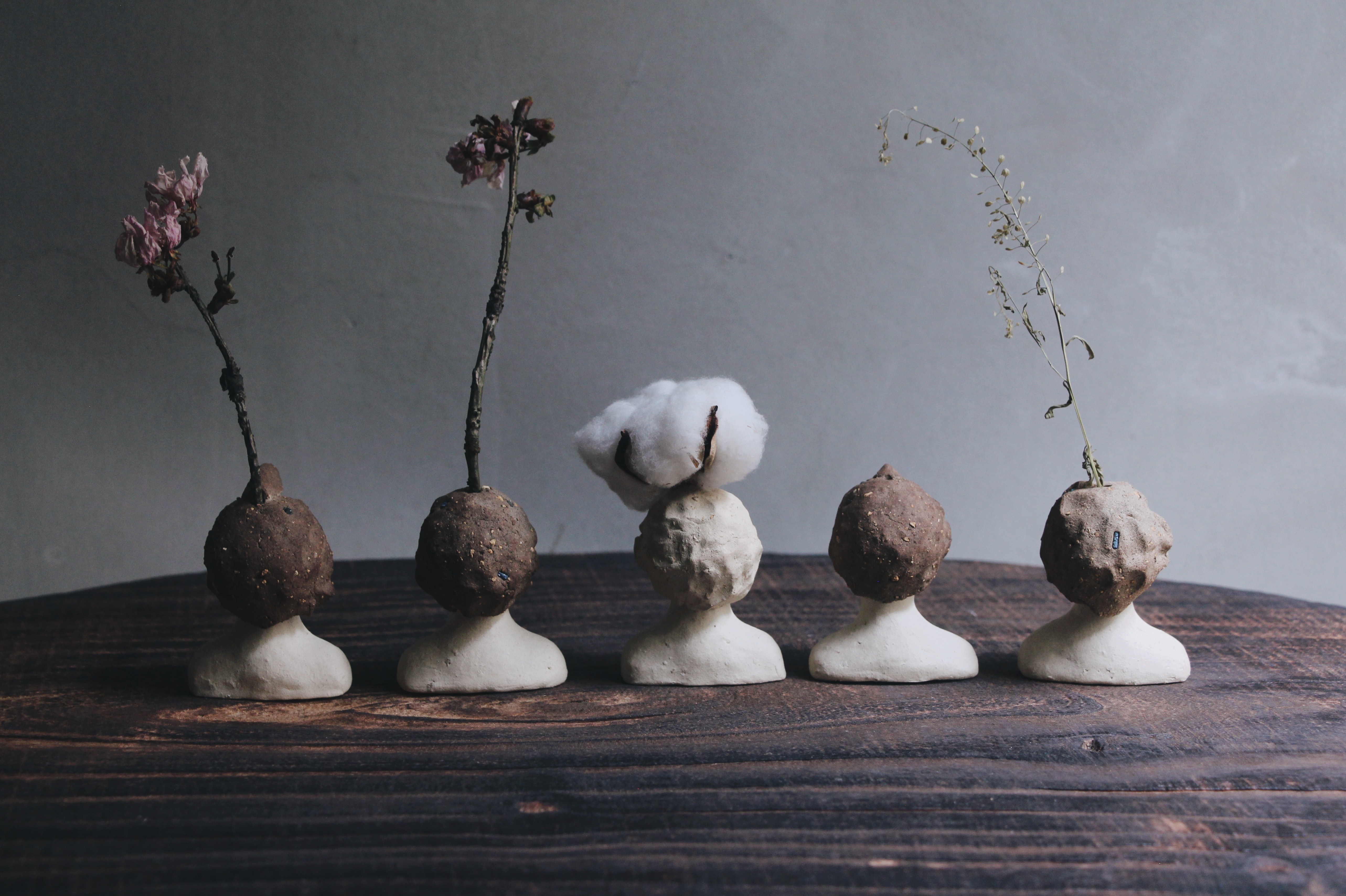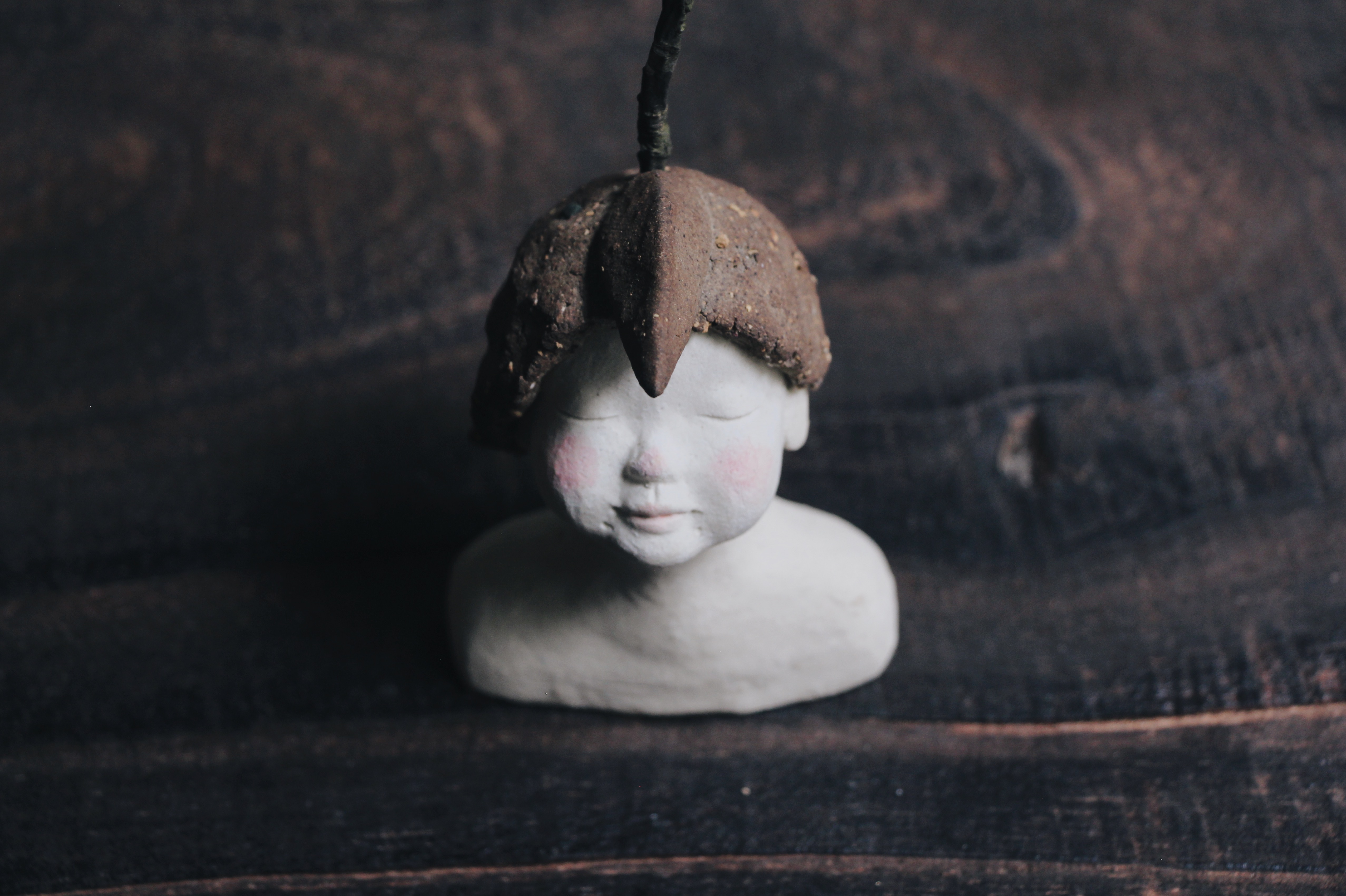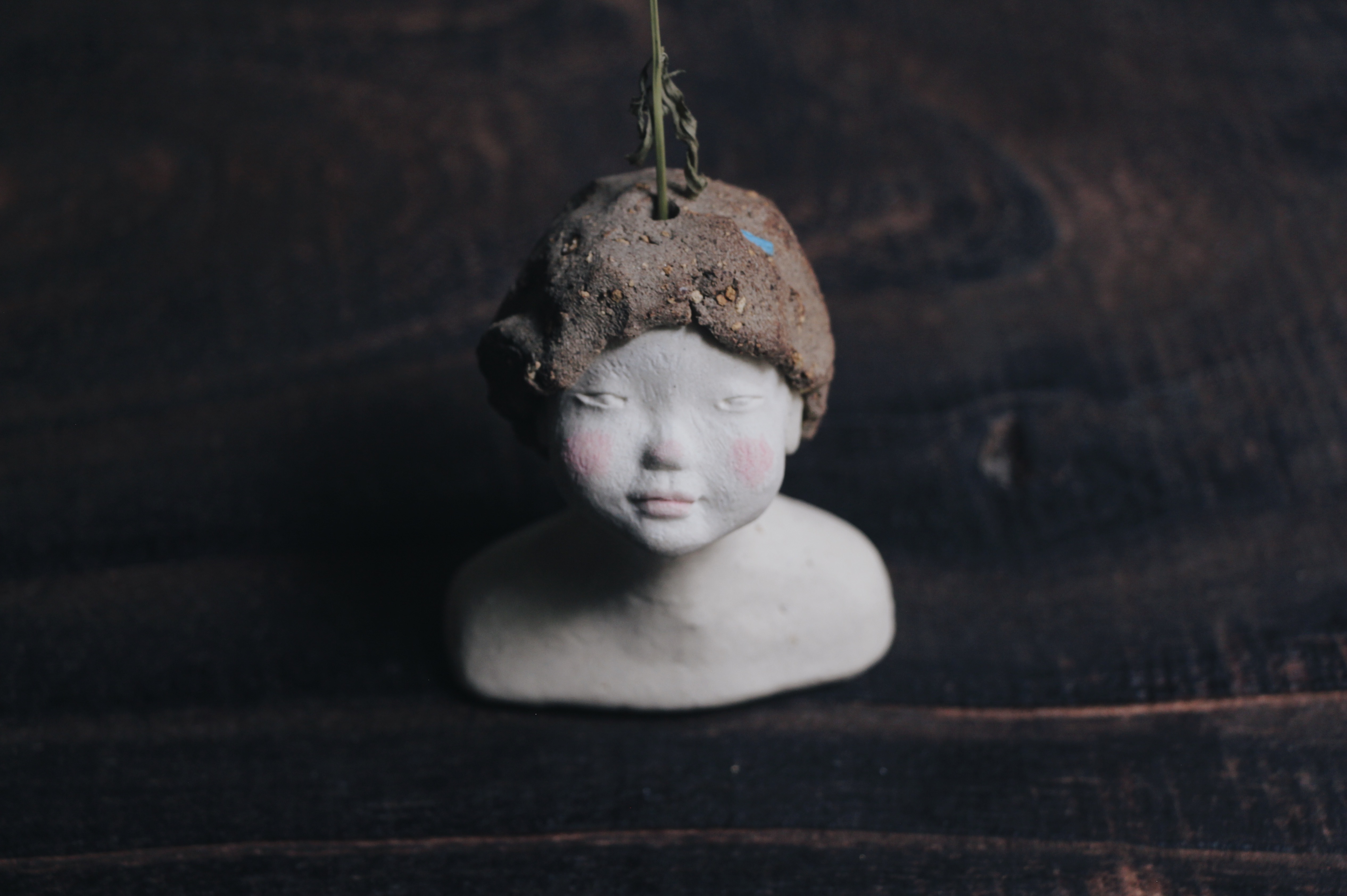 「希望陶人偶能呈現出安靜在聆聽的模樣,而身旁是他的小夥伴,可當乾燥花器。」